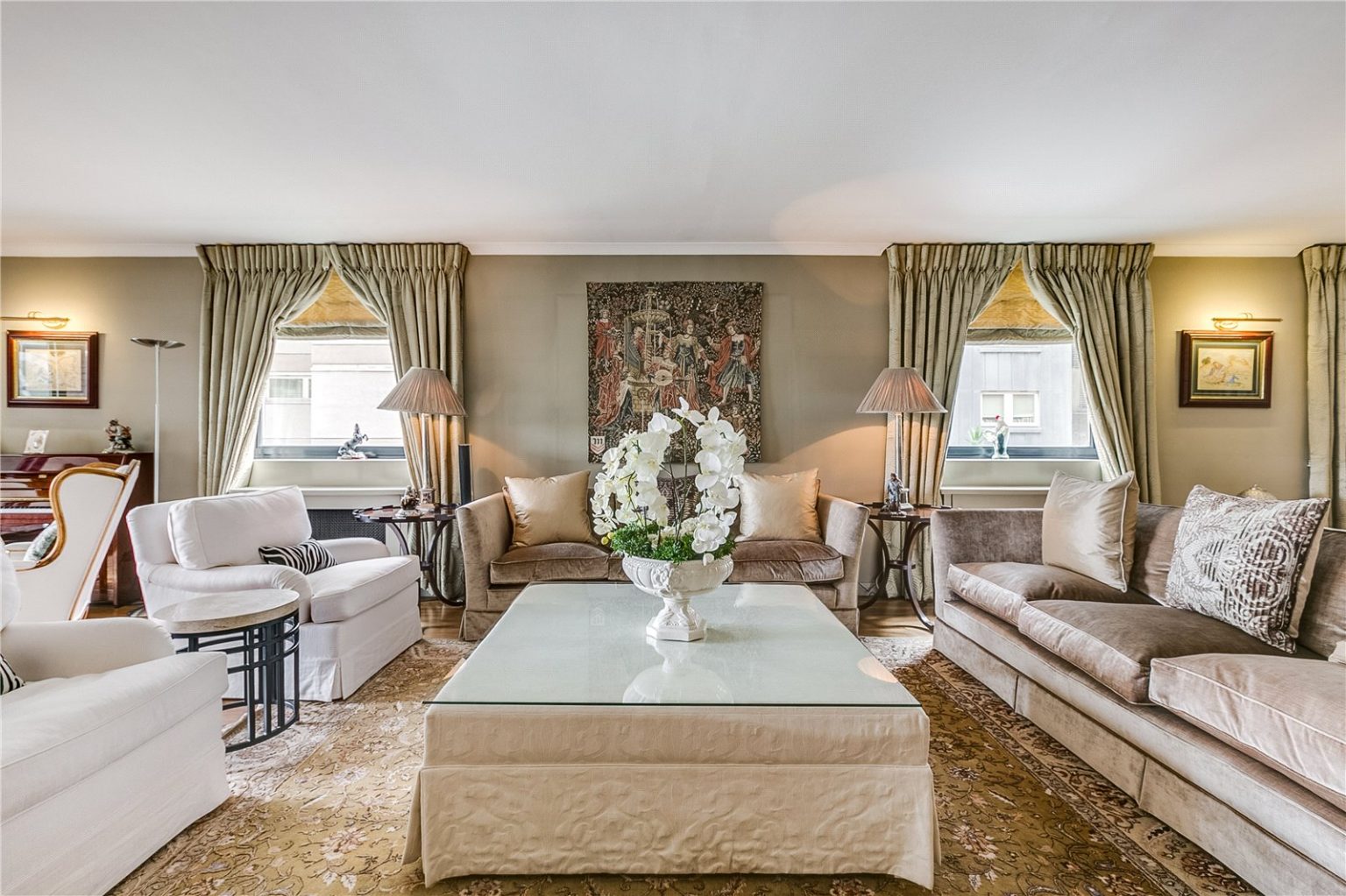 Newly refurbished to the most exacting of specifications, this property on the highly coveted Wigmore Street comprises a large entrance area, a bespoke fully fitted kitchen perfect for entertaining, a bright reception room, three double bedrooms, two of which have en suite bathrooms, and a separate WC. Decorated in a neutral and tasteful way throughout, the property has wooden flooring, feature windows, built-in storage and high ceilings.