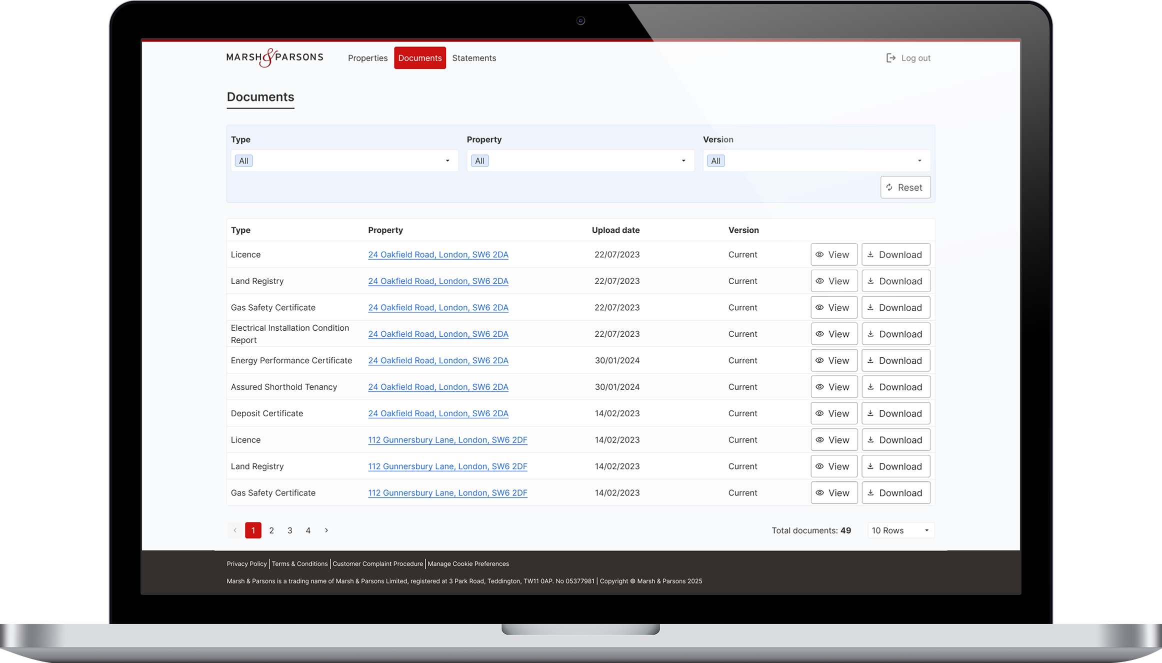 Easily access and download documents related to each property. This includes tenancy statements as well as records such as tenancy agreements, various certificates and other important files.
