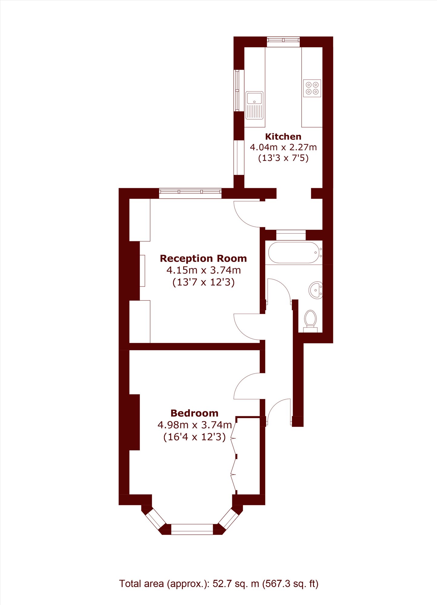 The accommodation is well arranged, comprising a spacious reception room with ample space for both living and dining, a separate kitchen, a generous double bedroom, and a bathroom. The layout provides a solid foundation for refurbishment, allowing a purchaser to modernise and personalise to their own taste.