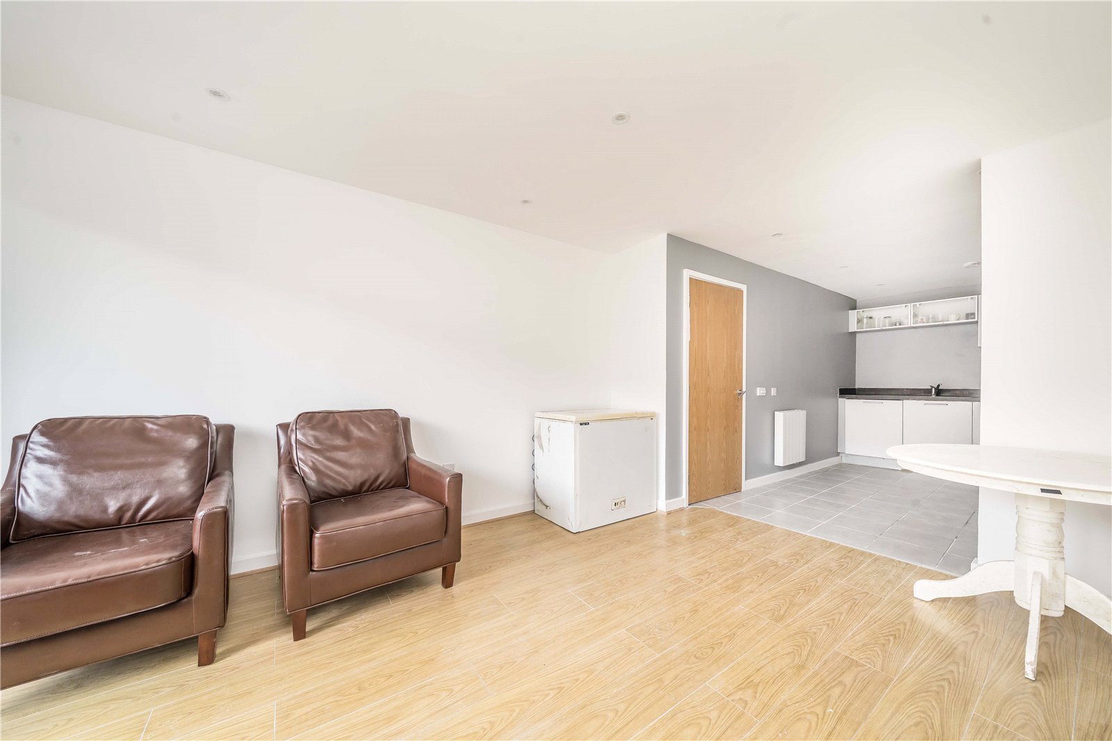 The property offers a bright reception room with an open plan fully integrated kitchen, one double bedroom, modern tiled bathroom. Further benefits include patio doors leading to a balcony and an allocated secured parking space, intercom entry system, lift access within the building and ample storage space.