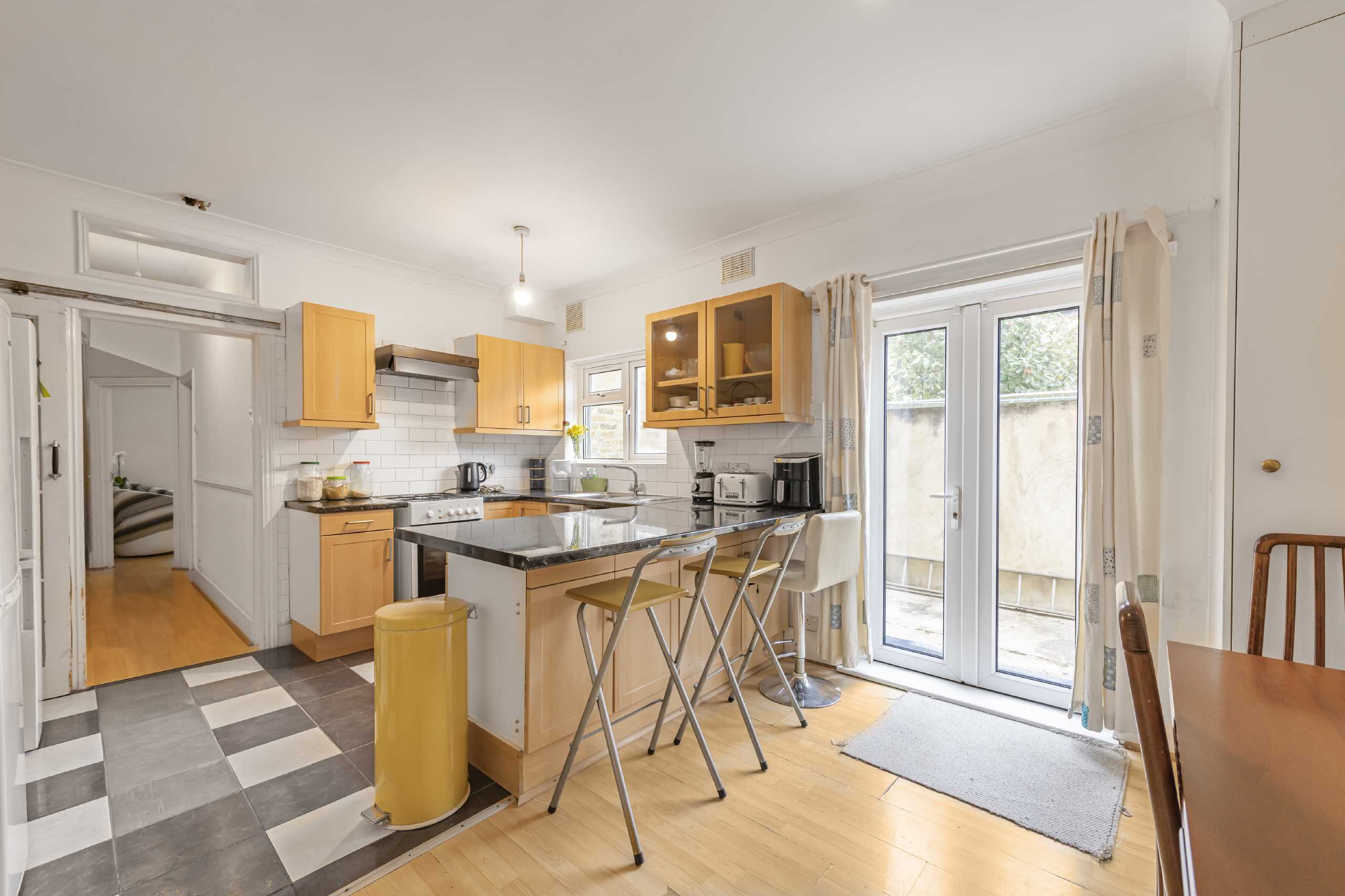 The property offers a double reception room at the front, a separate kitchen to the rear, and access to a private garden. Large windows throughout provide good natural light, and the layout offers flexibility for modern family living.