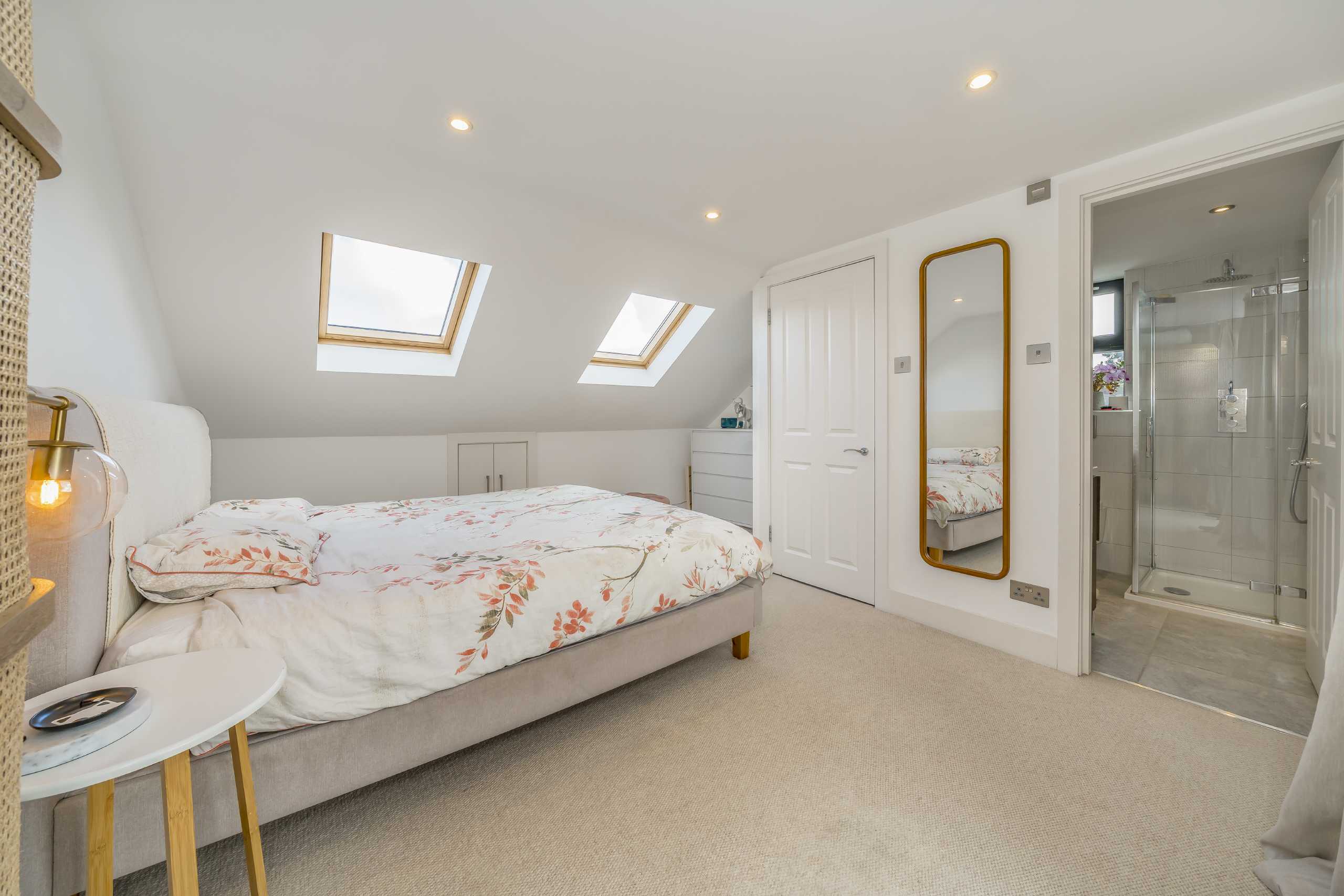 The first floor accommodation consists of three good sized double bedrooms, a smart modern family bathroom. The loft has been fully converted and is arranged as a luxurious principal bedroom with en suite shower room.