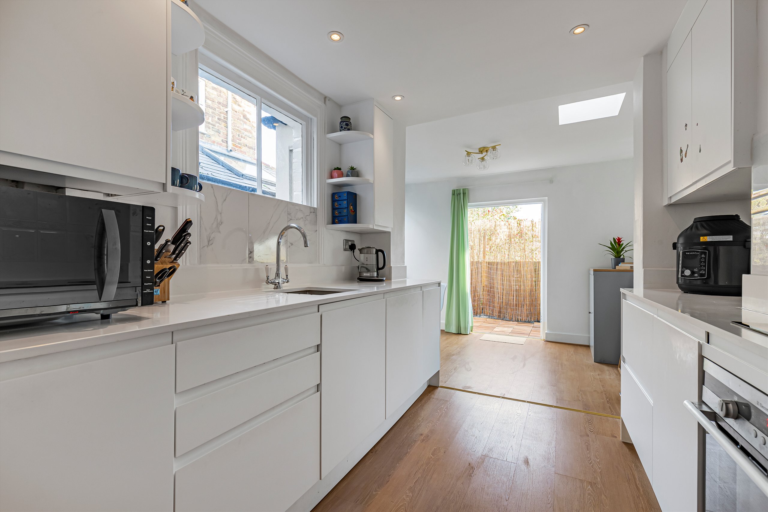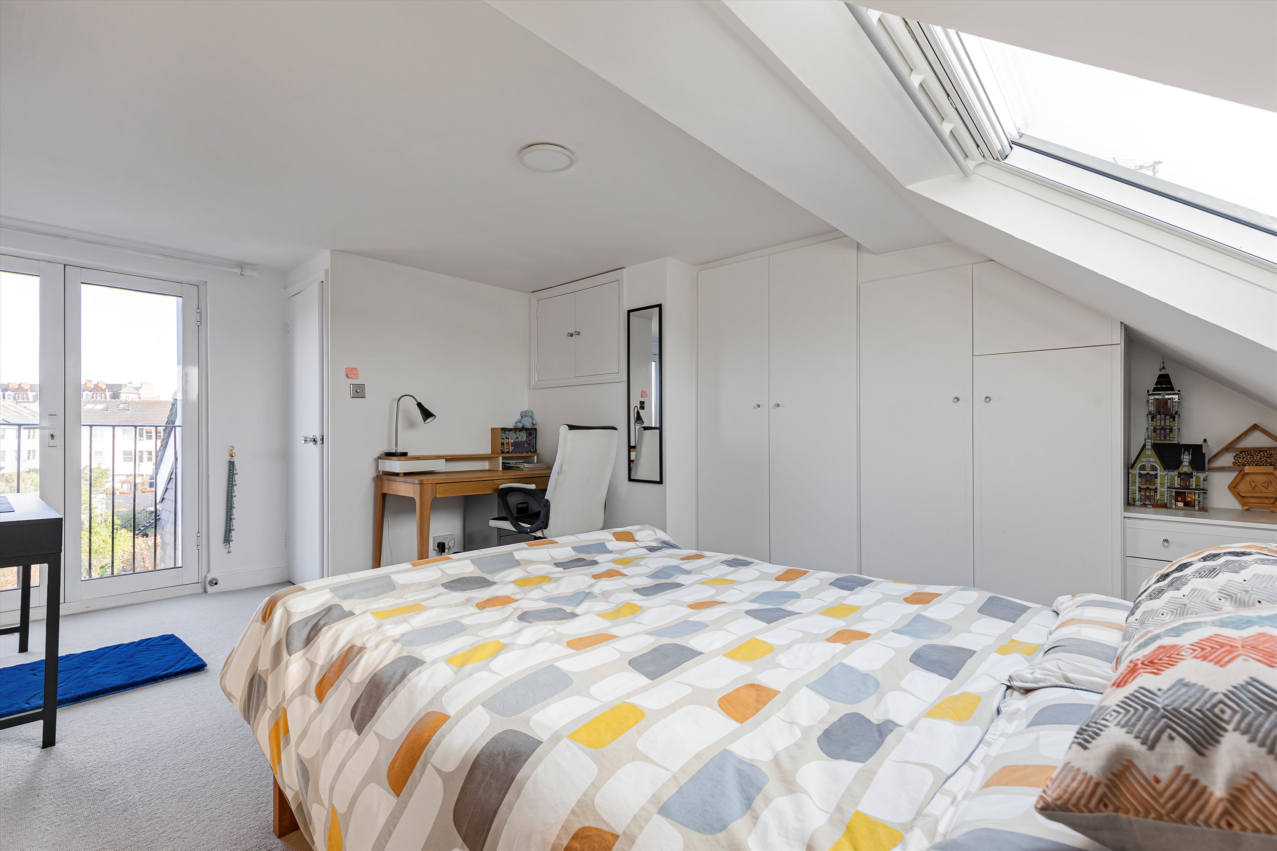 The property comprises a double reception room with a bay window and lovely views looking down Lillian Road. Off the entrance hallway is a W/C and coat cupboard which flows into a smart modern kitchen with dining room at the rear. French doors open onto a wrap around courtyard garden. Upstairs, the first floor boasts high ceilings and plenty of natural light, there are two double bedrooms, the main bedroom spans the full width of the house and benefits from built in wardrobes. There is also a stylish family bathroom with a door leading onto a charming roof terrace with lovely views looking back towards Hammersmith Bridge and the River Thames. On the top floor, is a light, bright and spacious large double bedroom with built in wardrobes. A juliet balcony also looks back towards Hammersmith Bridge, offering lovely views across St Paul's playing fields. The top floor also has the benefit of a second bathroom/shower-room. There is plenty of storage throughout, including ample eaves storage in the loft.