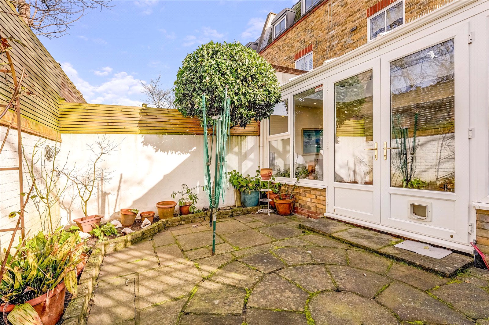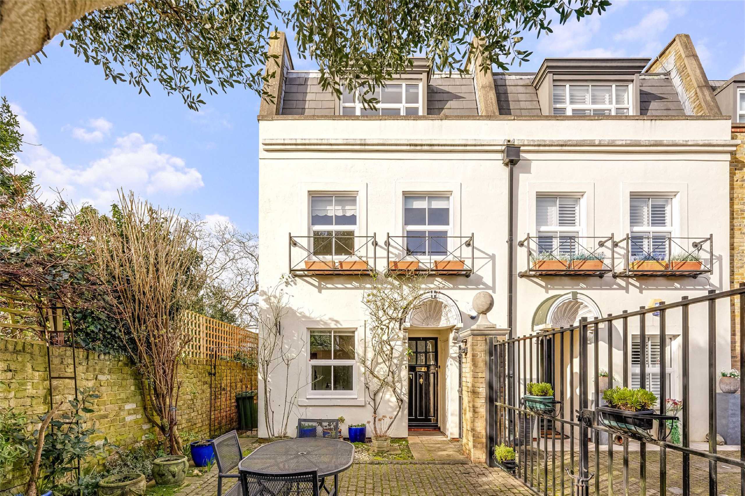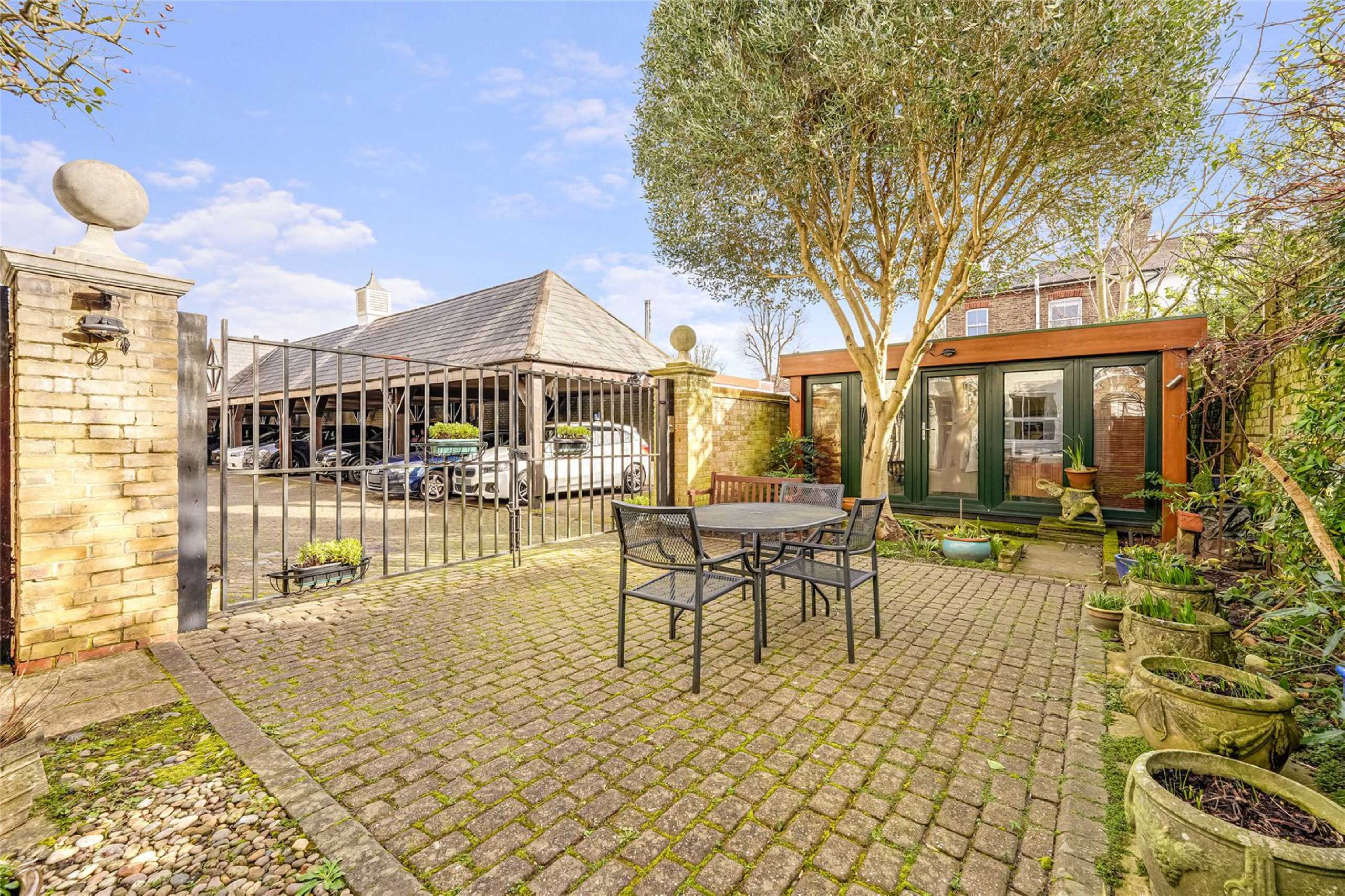 Marsh & Parsons are pleased to offer this four-bedroom end-of-terrace townhouse in a gated cobbled mews in Barnes. The property features a front patio and a fully equipped studio/outhouse. The extended ground floor includes open-plan kitchen and living/dining space, a utility room, and an en-suite bedroom. Upstairs are two double bedrooms and a family bathroom, with one room currently used as a living area. Large windows provide plenty of natural light.