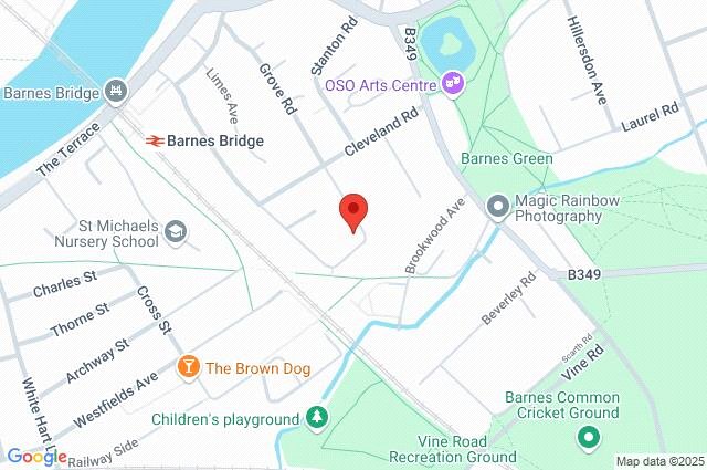 Cambridge Road is in the heart of Barnes Village, close to shops, cafes, the River Thames, and OSO Arts Centre. It's a 10-minute walk from both Barnes Bridge and Barnes Station, with regular trains to Waterloo. Nearby are top schools including St Paul's, The Harrodian, The Swedish School, Barnes Primary, and St Osmund's.