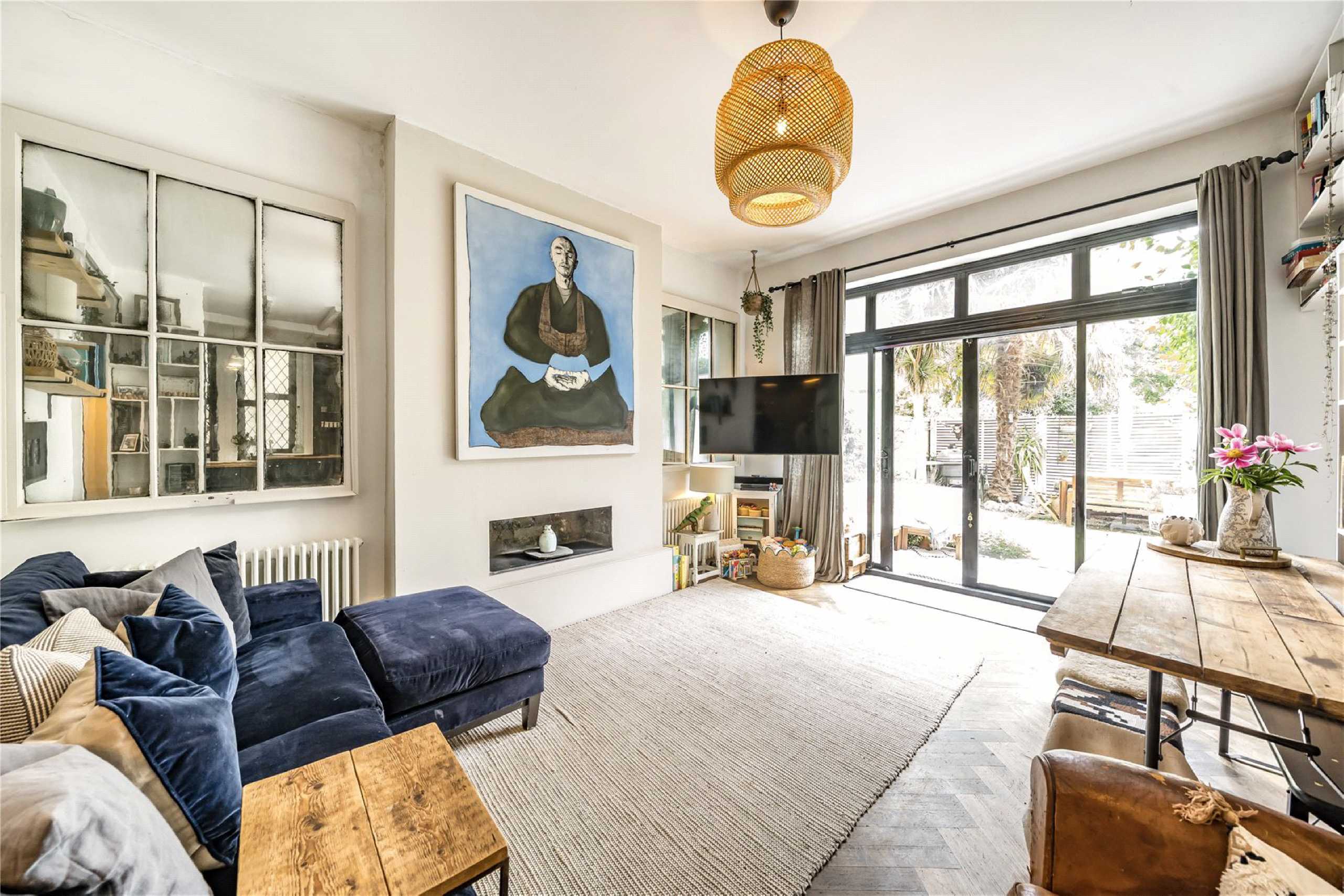 A beautifully presented two-bedroom Edwardian ground-floor flat, full of period charm and high ceilings, with a private south-facing garden and direct access. Just moments from Barnes Station and Barnes Common, it offers a share of freehold, spacious open-plan living, two en-suite double bedrooms, and ample built-in storage.