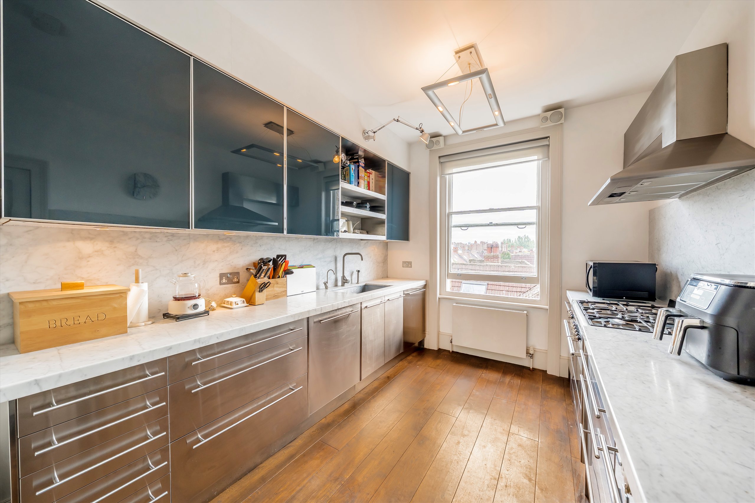 Marsh & Parsons Barnes are delighted to present this stunning third-floor flat, arranged as two bedrooms and a spacious study, with spectacular views over St Paul's playing fields and the River Thames. Interior-designed by Thomas Wiggins, the property was fully refurbished to a high standard, featuring Carrara marble worktops, soundproofed engineered hardwood floors, and a perfect blend of period charm with modern luxury.