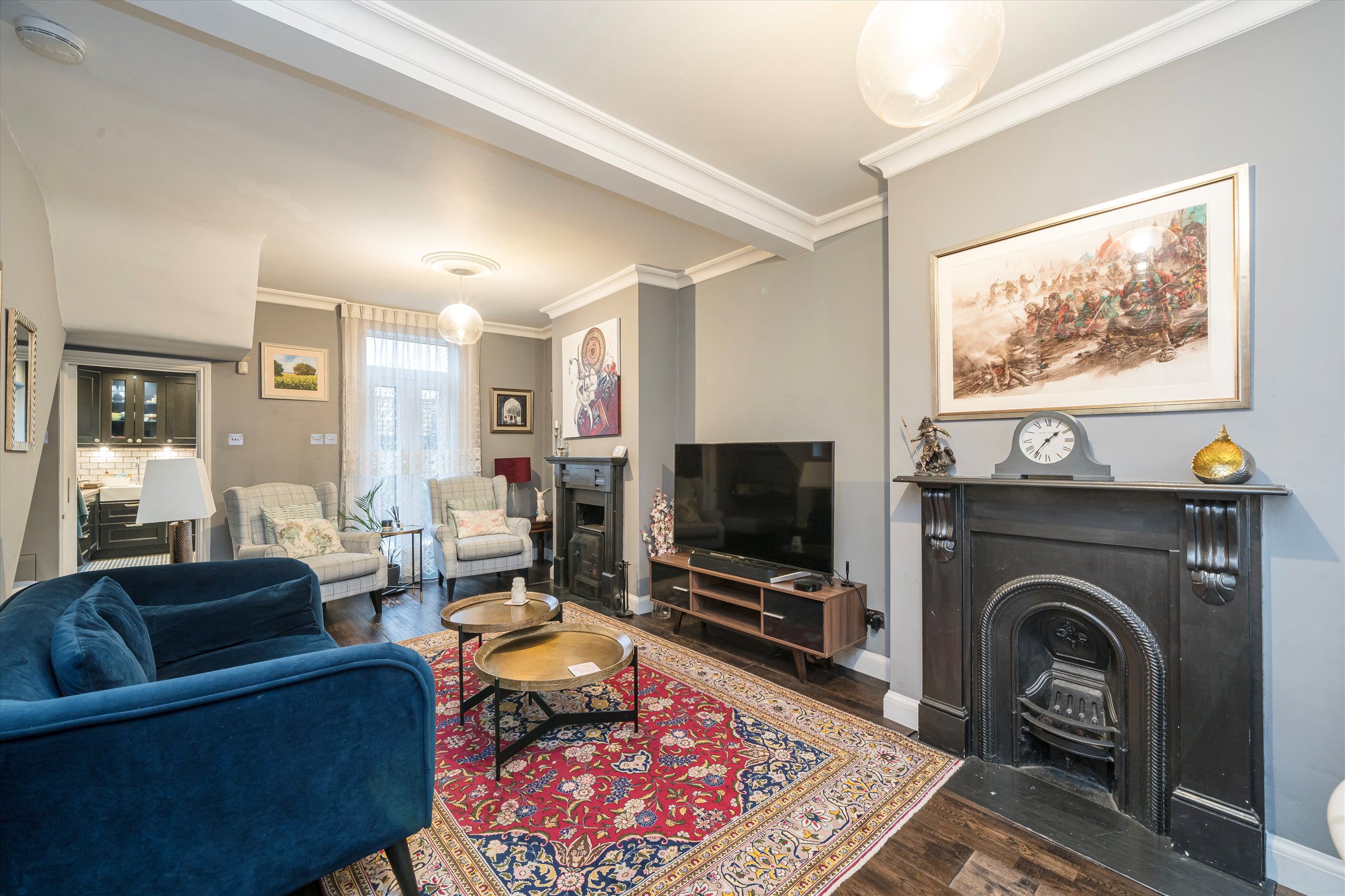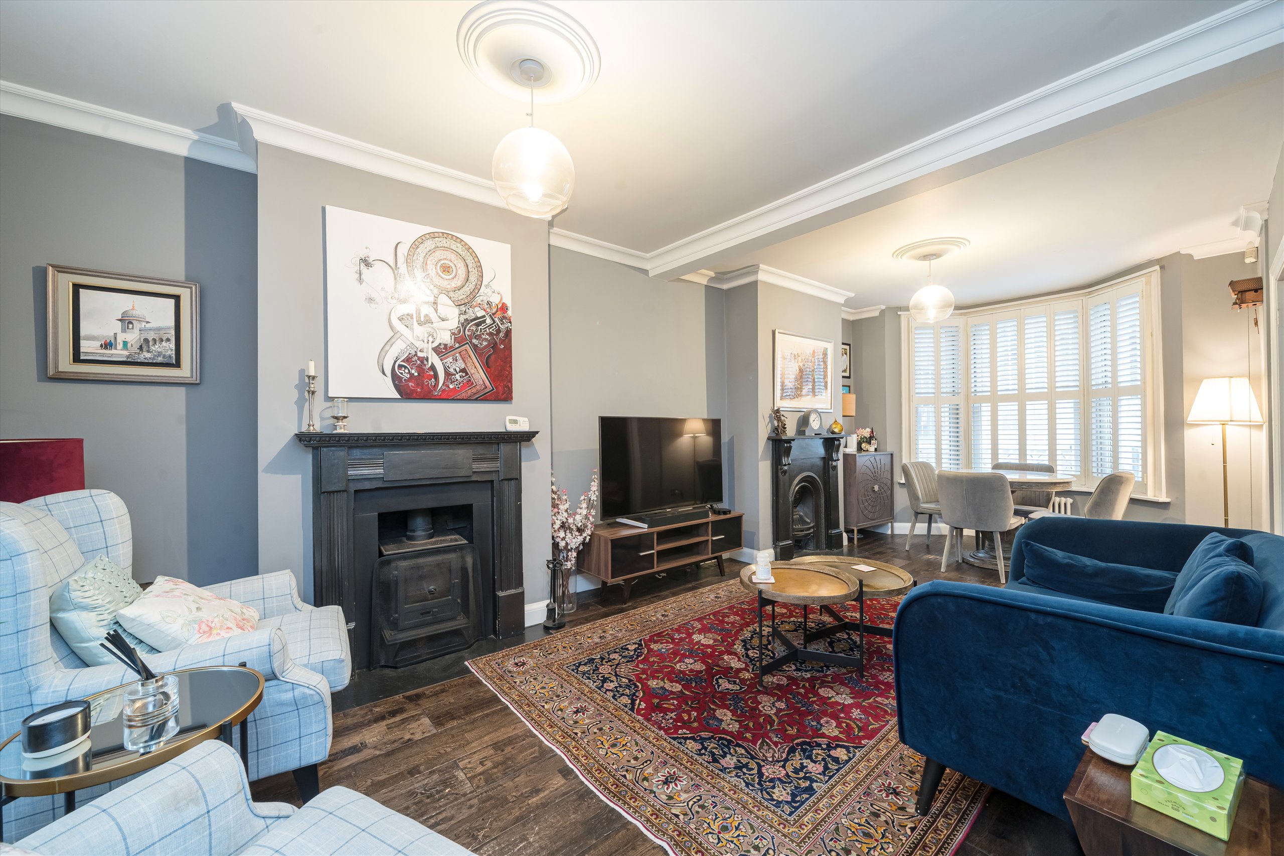 This elegant freehold house has been stylishly decorated throughout and offers well-balanced accommodation comprising three double bedrooms and two bathrooms. The entrance hall leads into a double reception room, showcasing all the character features you would expect from a period home. The property benefits from a fully fitted kitchen with direct access to a patio garden. The first floor offers two generous double bedrooms, serviced by a full family bathroom featuring a roll-top bath. The second floor has been thoughtfully extended into the roof space to provide a stunning principal or guest suite, featuring a spacious double bedroom and a beautifully appointed luxury bathroom.