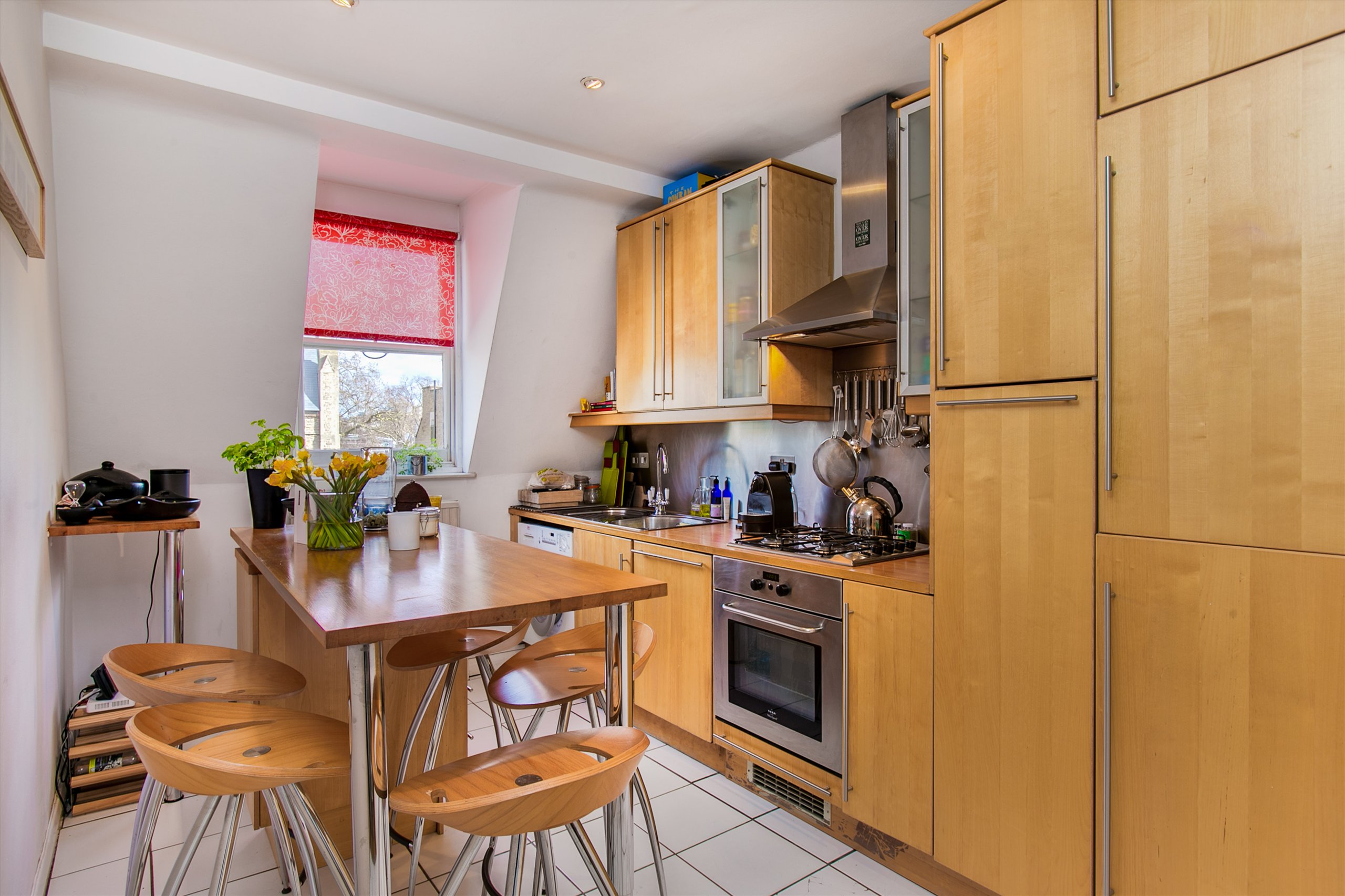 There is a kitchen breakfast room adjacent to the reception room allowing for greater social interaction while entertaining. The sleeping area includes two almost identical double bedrooms both with built-in wardrobes. Two strategically placed sky lights in the hall and bathroom, bathing the flat with light.