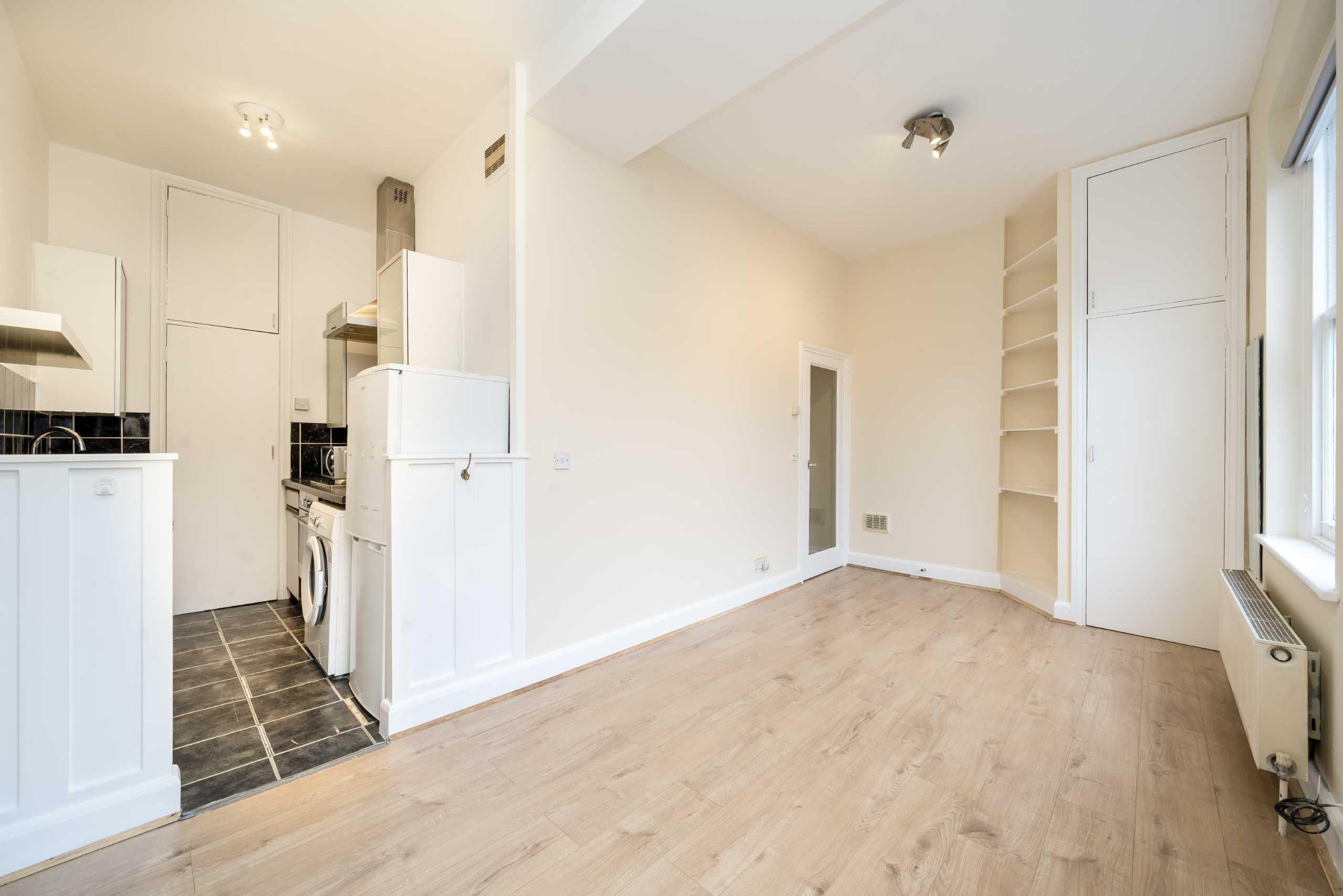Open to cash buyers only is this bright studio flat on the first floor of this Victorian conversion on a popular road in Brook Green. This flat has high ceilings, the opportunity to make it your own and would make an excellent investment.