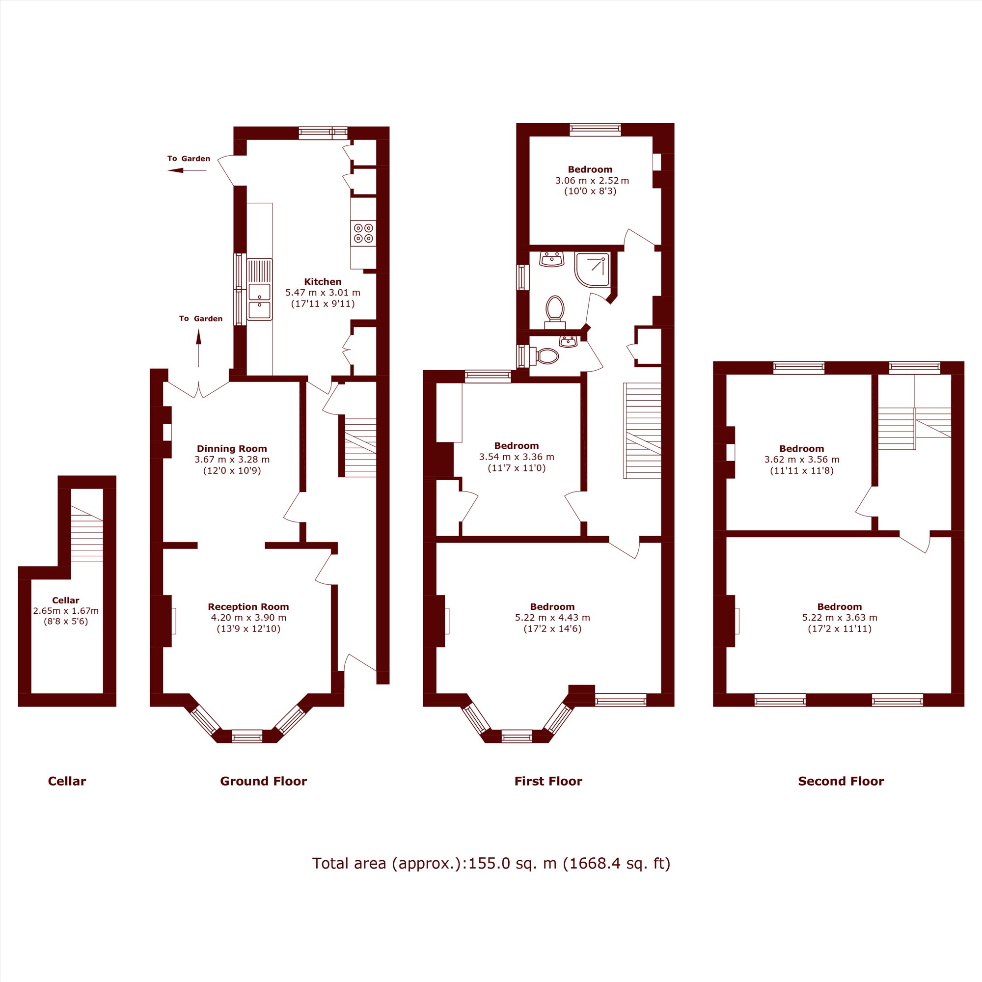 An impressive five bedroom period terraced house set over three floors, boasting 1668 sq ft of generous living space and a large south facing private garden.