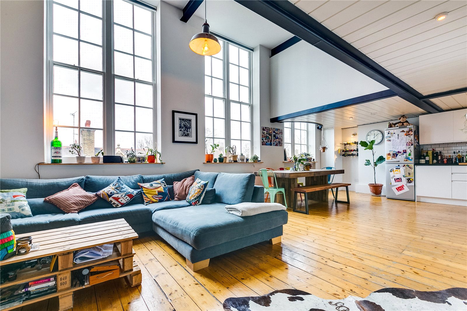 This apartment occupies the first and second floor of this development. The first floor has a reception room with phenomenal double height ceilings with an open plan kitchen with plenty of storage space and a guest toilet. On the second floor, we have the two large bedrooms and a modern family bathroom.