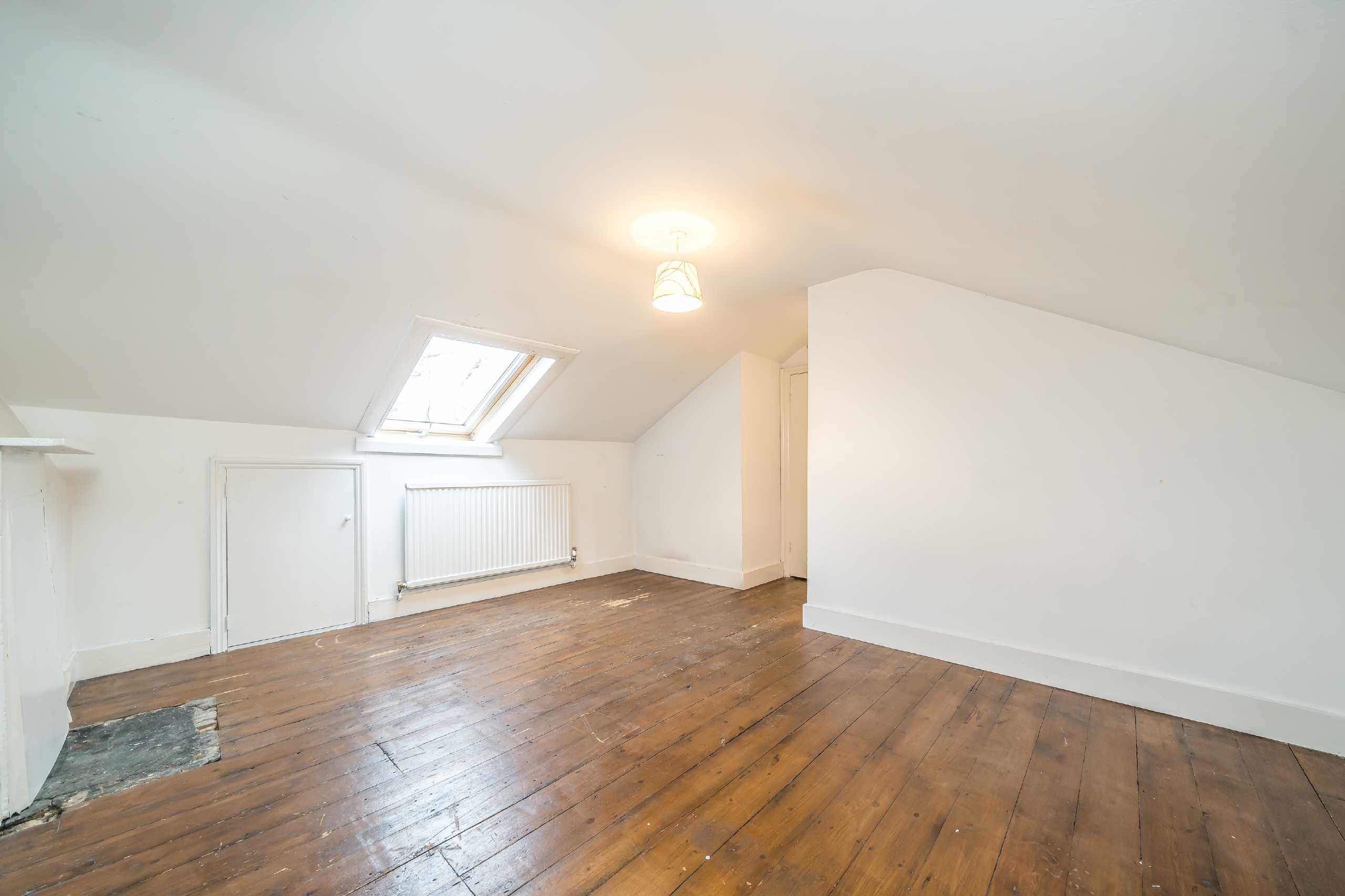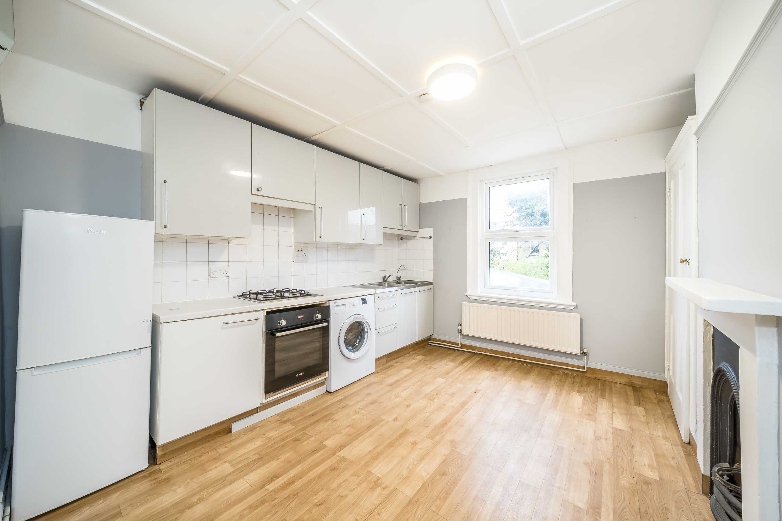 A generous and characterful three double bedroom flat spanning over the first and second floors of a handsome period property. The first floor comprises a reception room with a large bay window, a kitchen and a double bedroom all offering beautiful feature fireplaces and built-in cabinetry, alongside a three piece bathroom and separate W/C. Upstairs offers a further two double bedrooms and additional W/C. Offered to the market chain-free.