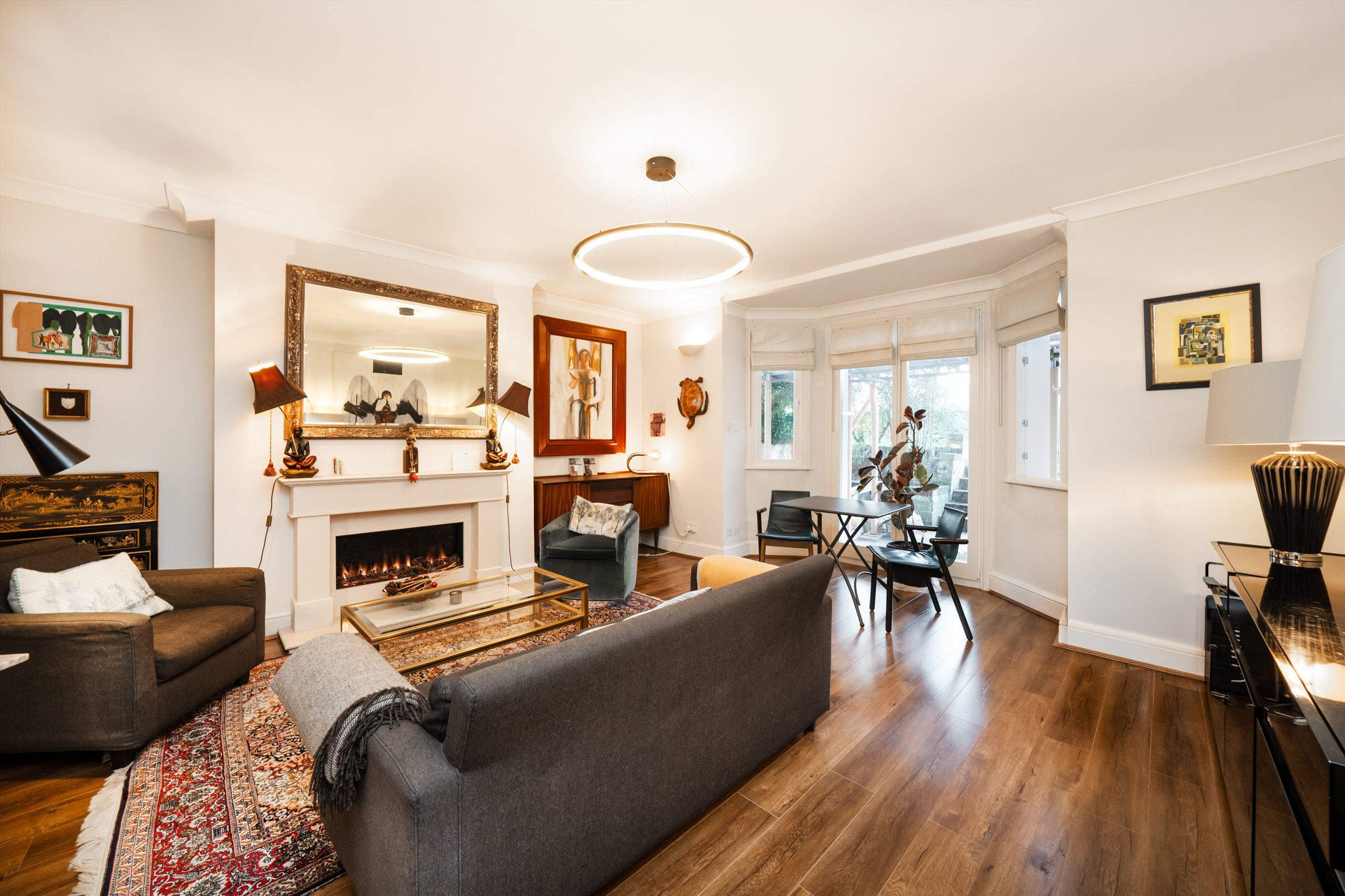 A beautifully presented two bedroom apartment benefiting from its own private entrance, featuring a bay fronted sitting room with wooden flooring and a feature fireplace, alongside a highly sought after separate fitted kitchen. The property offers two double bedrooms, with fitted wardrobe space to the principal bedroom, and two bathrooms. Direct access is provided onto attractive south-west facing gardens.