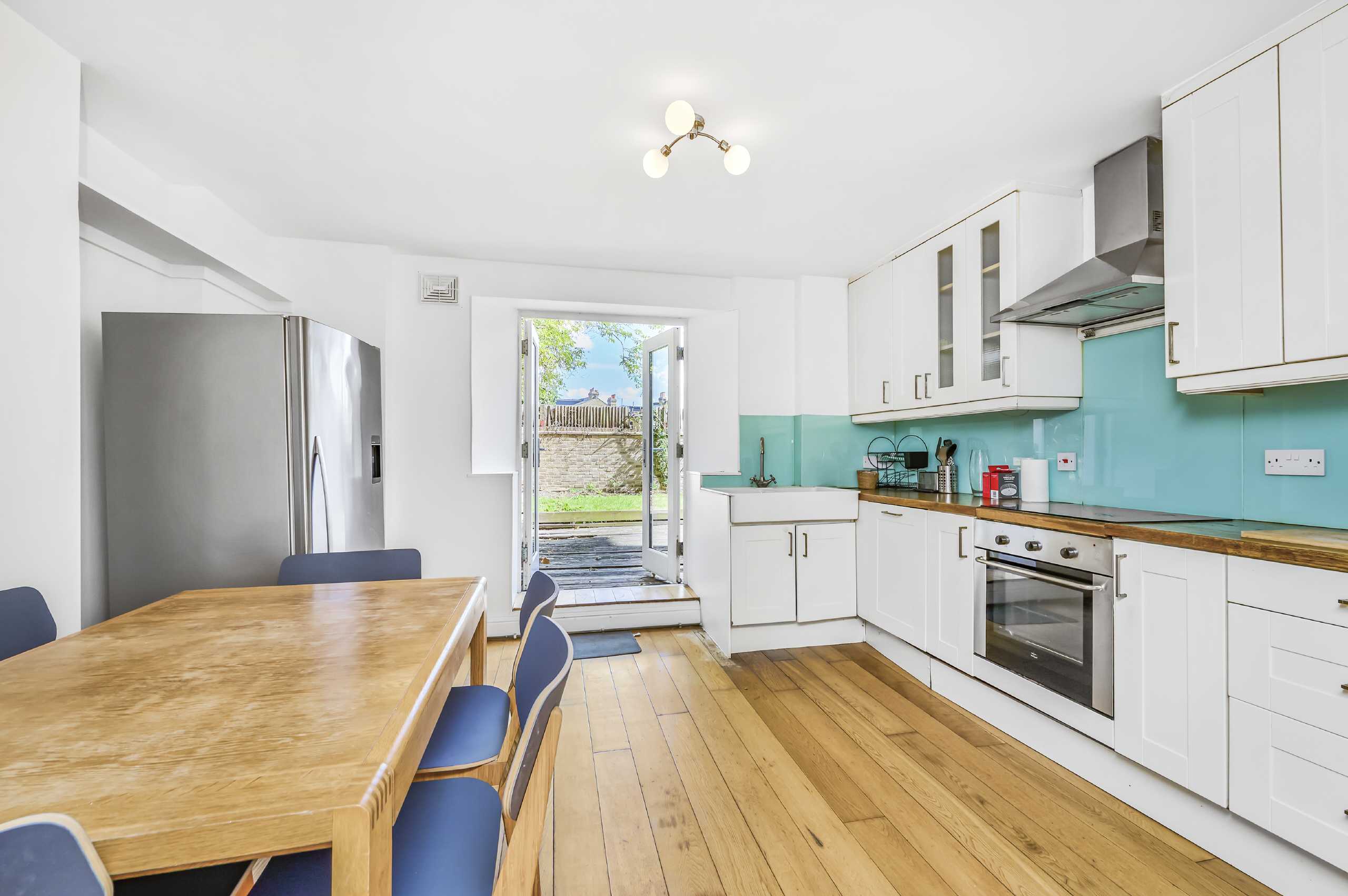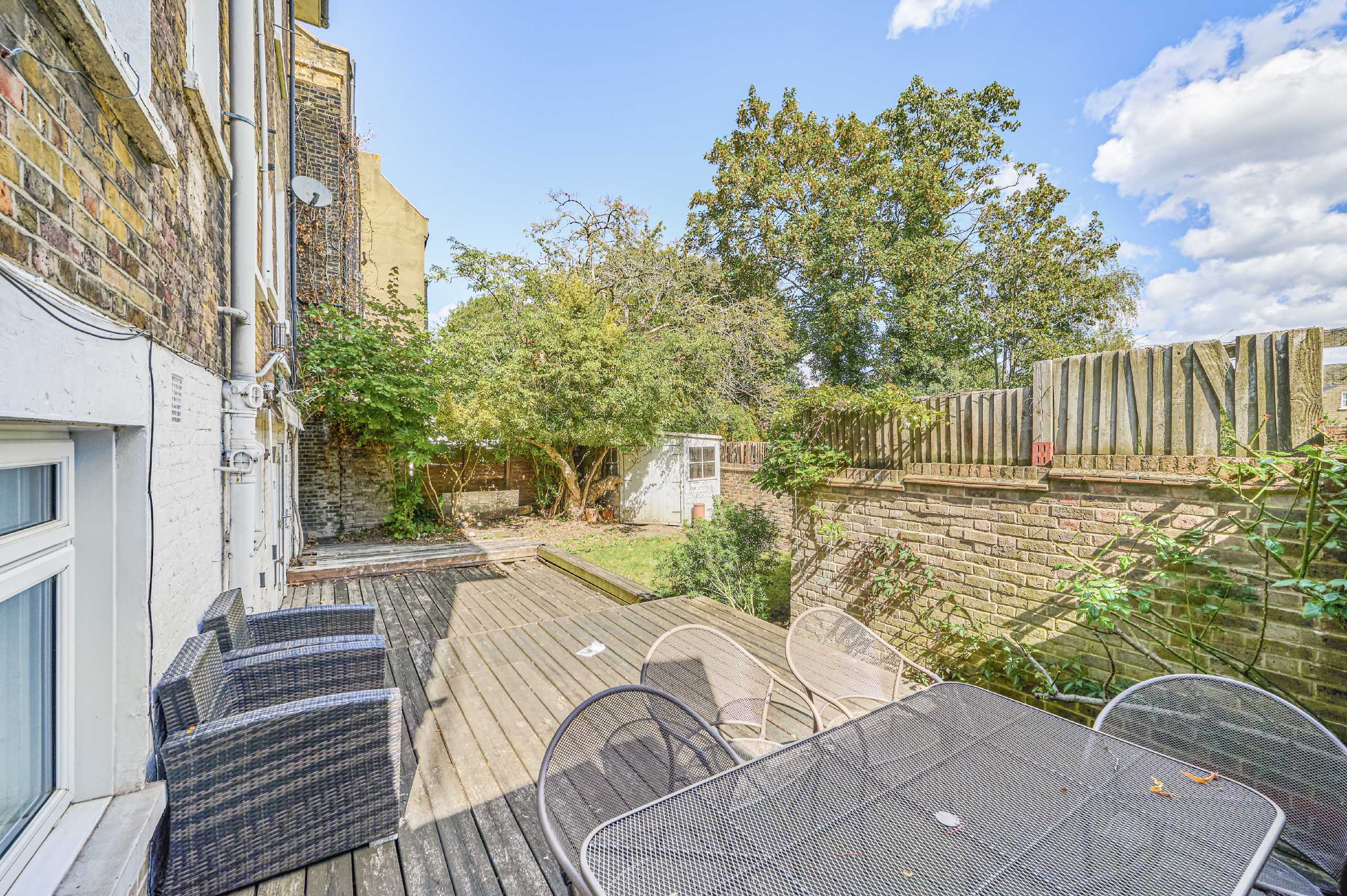 Set within an impressive and handsome period conversion, this spacious two double bedroom garden flat offers over 900 sq ft of internal living space. The property comprises of a generous open plan living-kitchen-dining room with direct access to a large private garden, two well-proportioned double bedrooms and a contemporary bathroom. The property retains a share of the freehold and is offered to the market chain free. *CGI imagery
