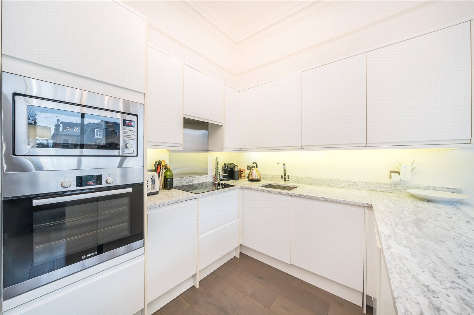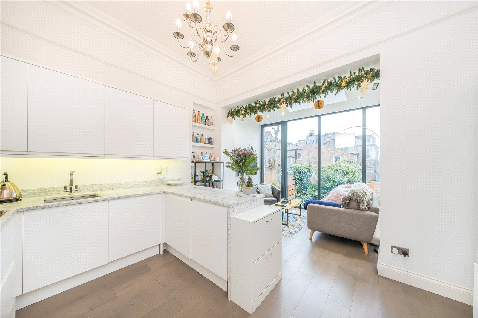 This gorgeous two-bedroom flat is positioned on the raised ground floor of this handsome Victorian conversion along this premium address in Balham. The property exudes charm and characterful features such as high ceilings and floor to ceiling windows. The property is presented in top quality condition offering bright and airy rooms with a feeling of space. The open plan kitchen is delightful with a selection of quality units and appliances.