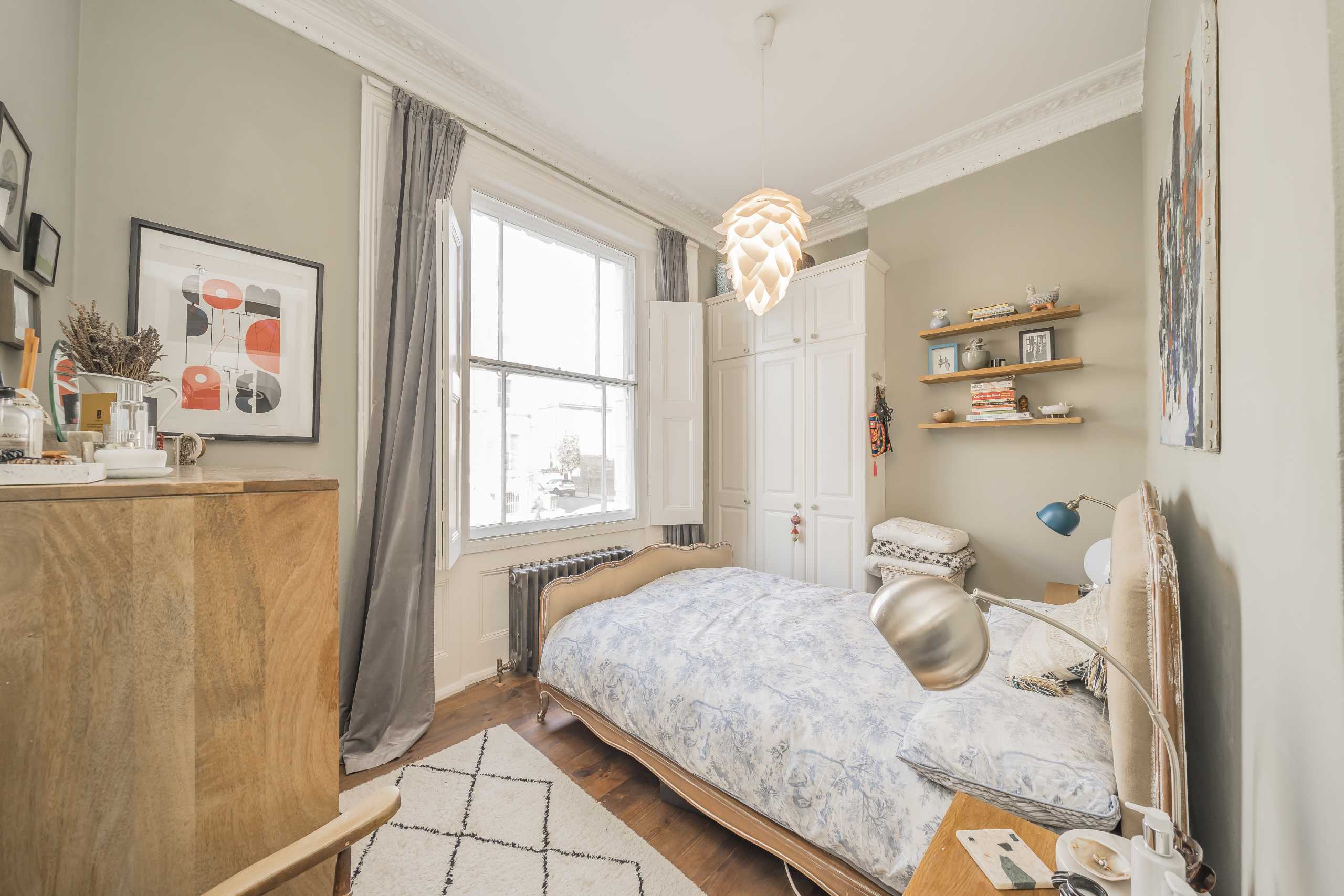 A superb one bedroom flat set over the raised ground floor of an impressive period building boasting a spacious bedroom with built-in wardrobes, a generous living room and a well-fitted kitchen with direct access to a charming south facing patio garden. The property further benefits from ample period character throughout including solid wooden flooring, cast iron radiators and large double glazed sash windows.