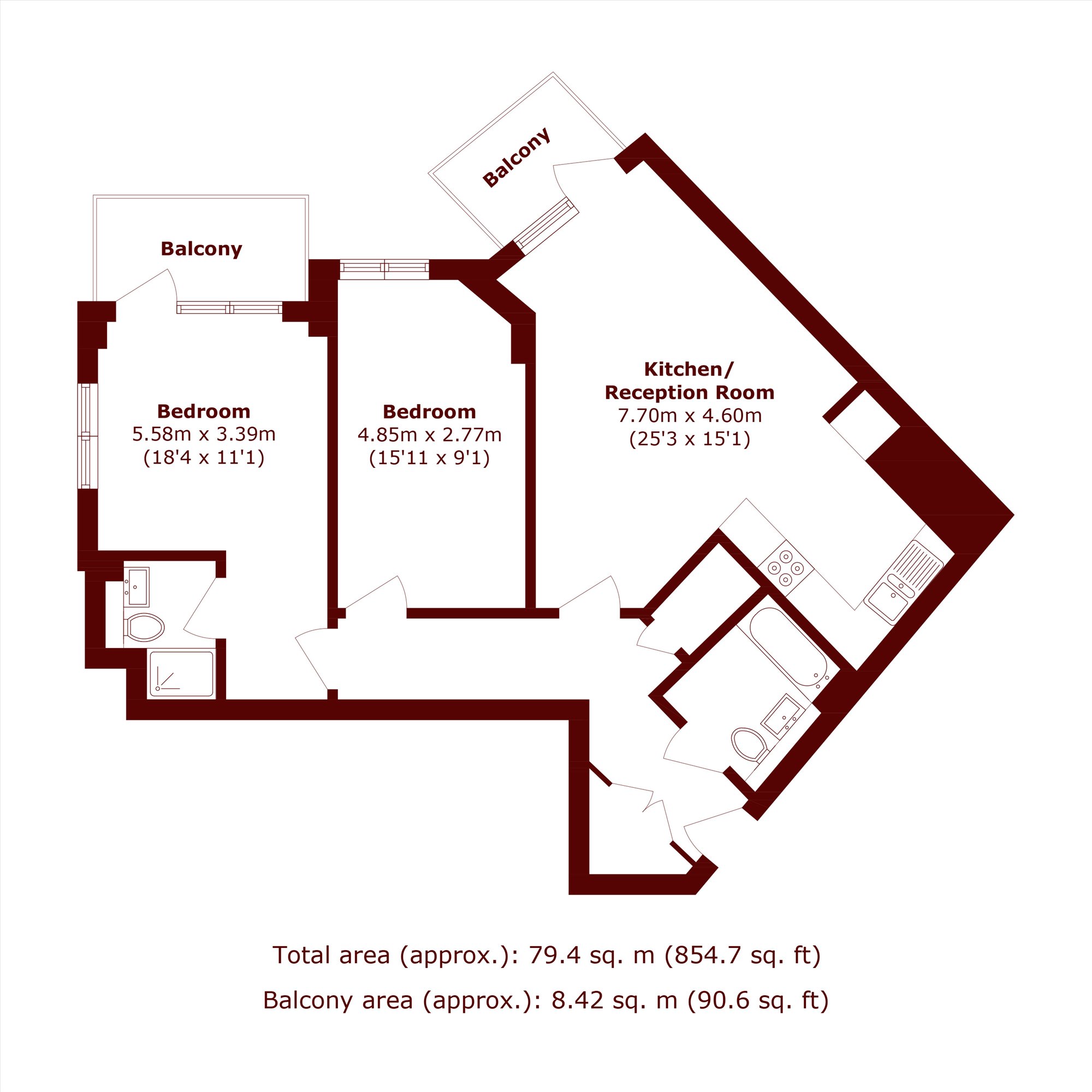 Situated in a desirable gated development this two double bedroom, two bathroom apartment offers so much more than the standard modern build. With tasteful styling throughout, this flat has a spacious living room and two private balconies.