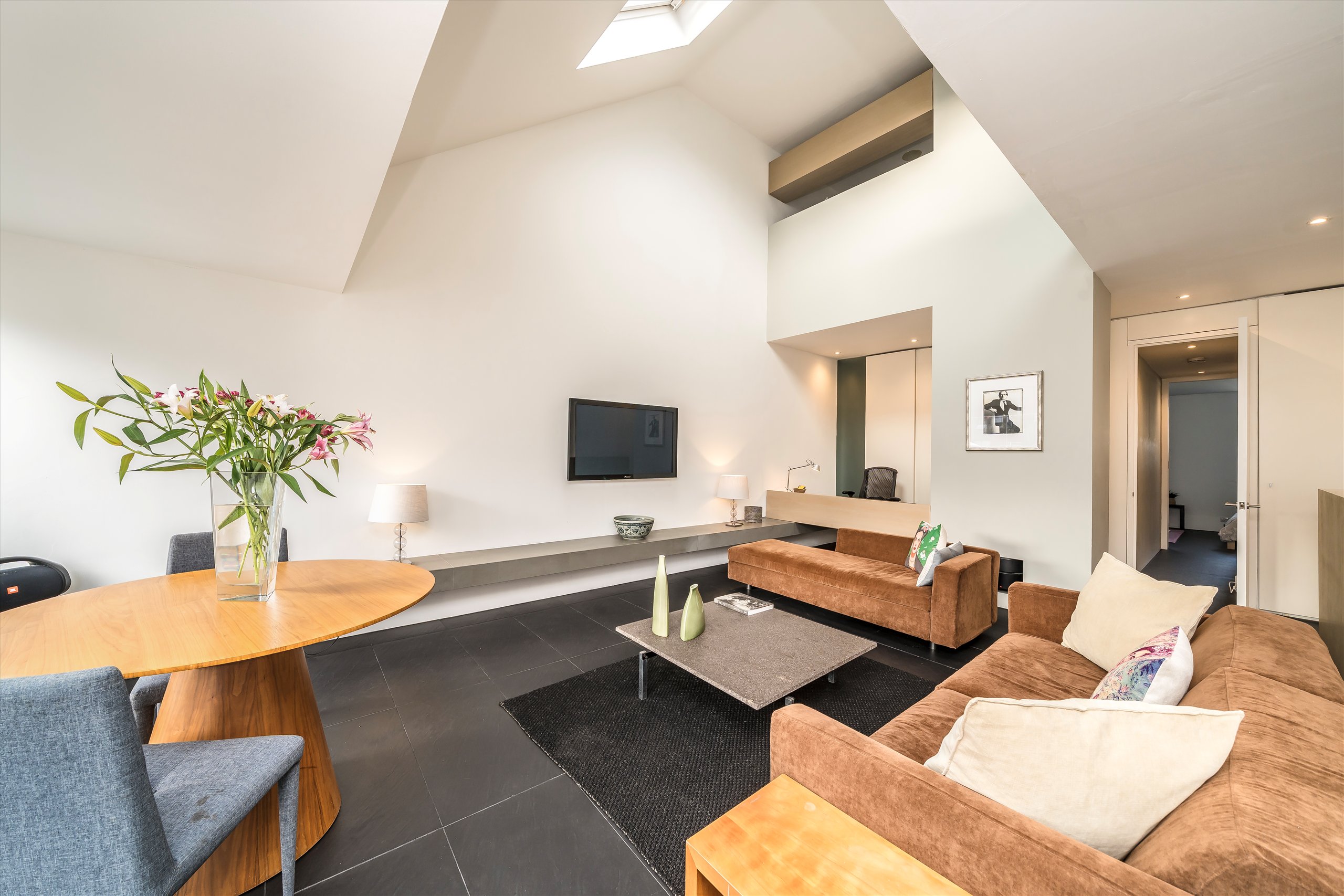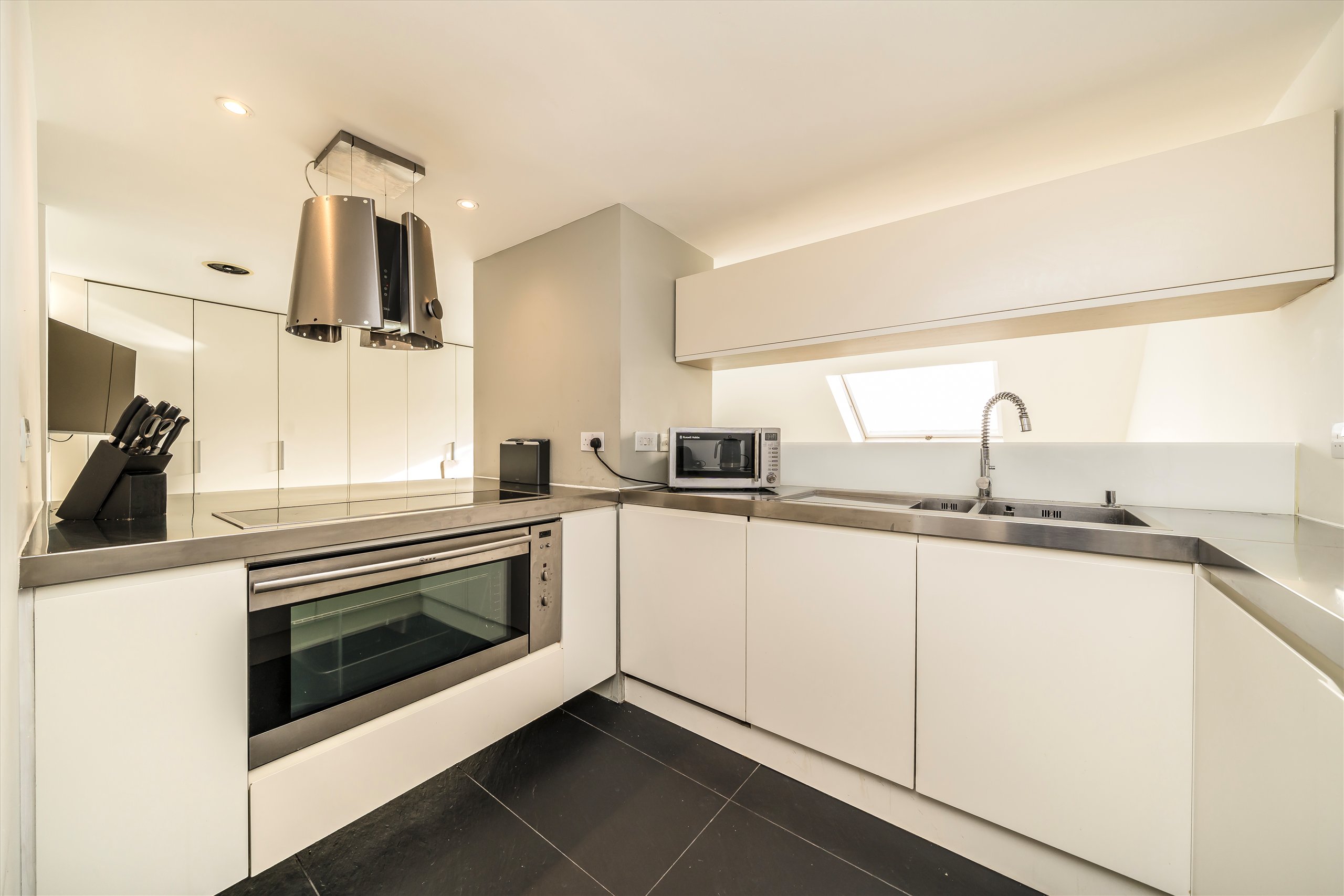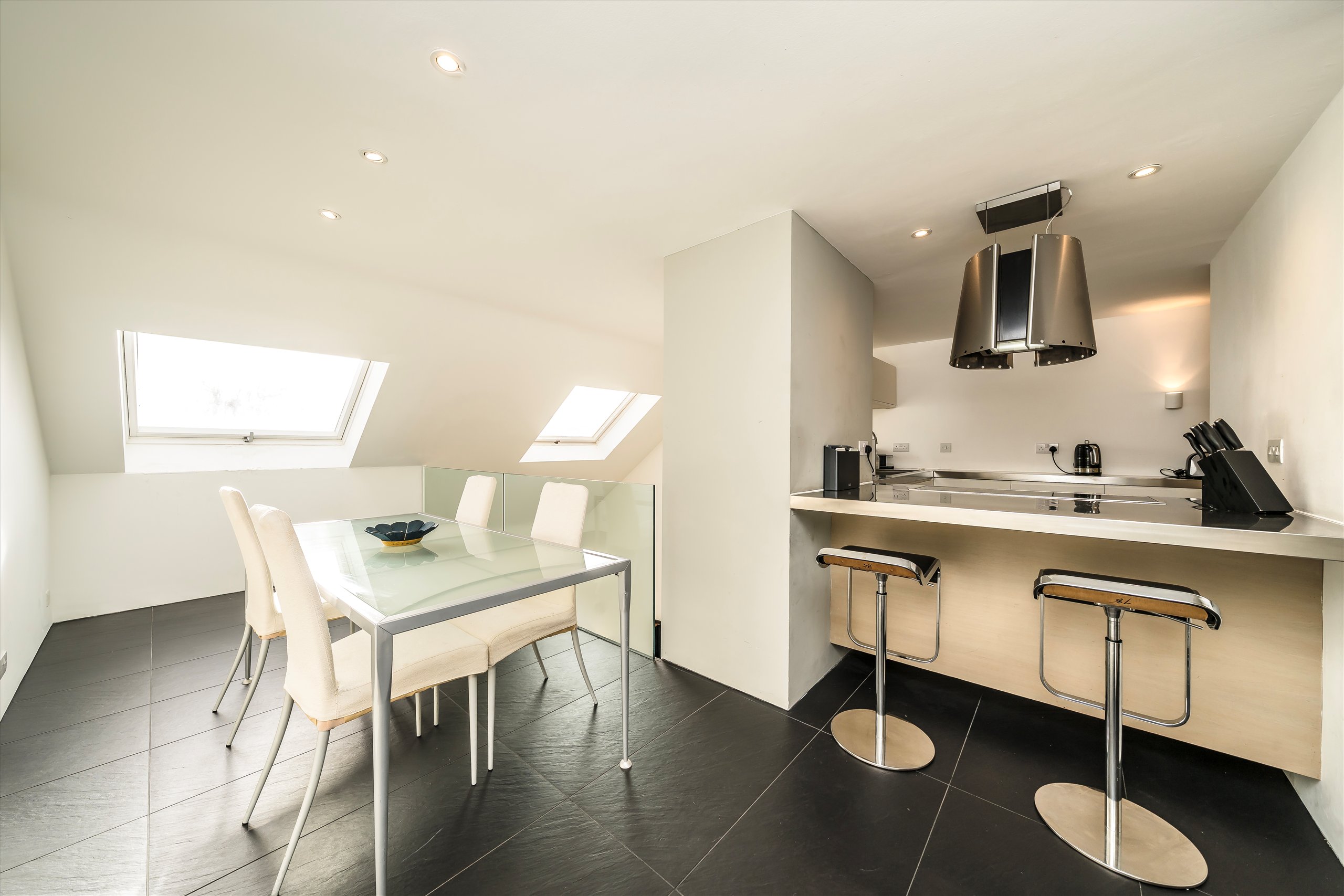 A stylish two-bedroom, two-bathroom, penthouse arranged over three floors, featuring a south-facing balcony and underground parking. Exceptionally bright throughout, the apartment offers impressive living space with floor-to-ceiling windows and skylights illuminating the reception room and separate kitchen/dining area. The building also offers impressive on-site facilities, including a gym, swimming pool, squash court and 24-hour reception.