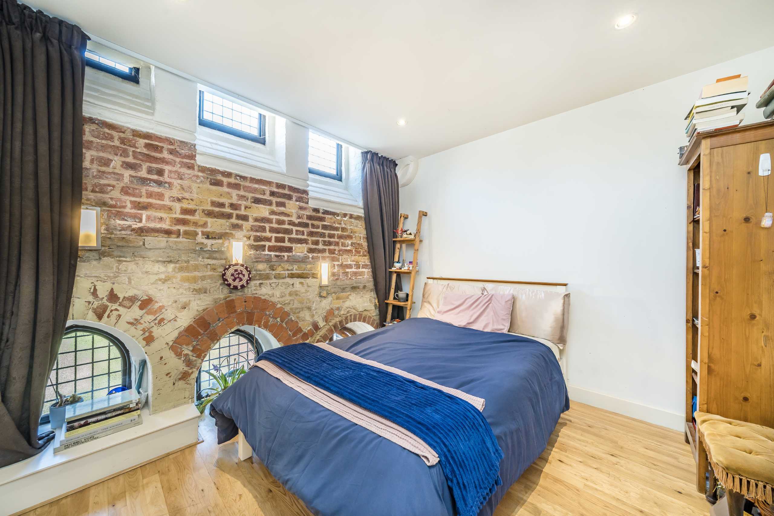 The original arched windows, exposed brickwork and soaring vaulted ceilings are showcased across every floor providing a dramatic backdrop to the modern layout. Additional benefits include an allocated parking space within the developments private courtyard and communal garden area.