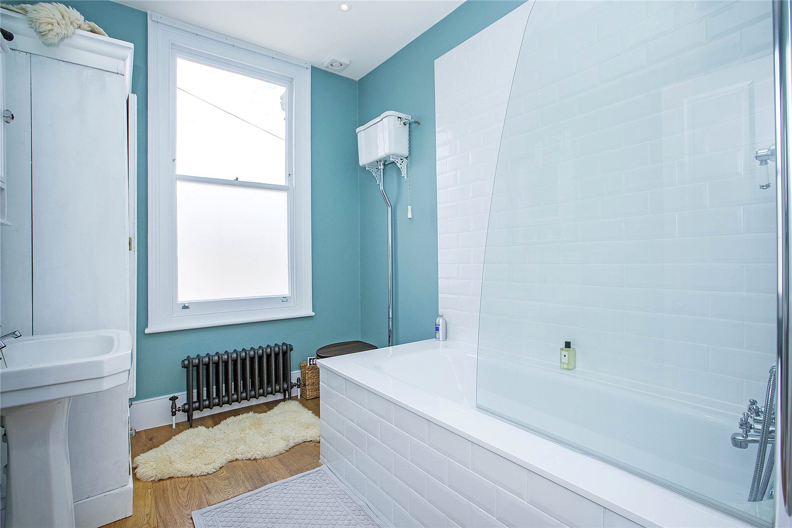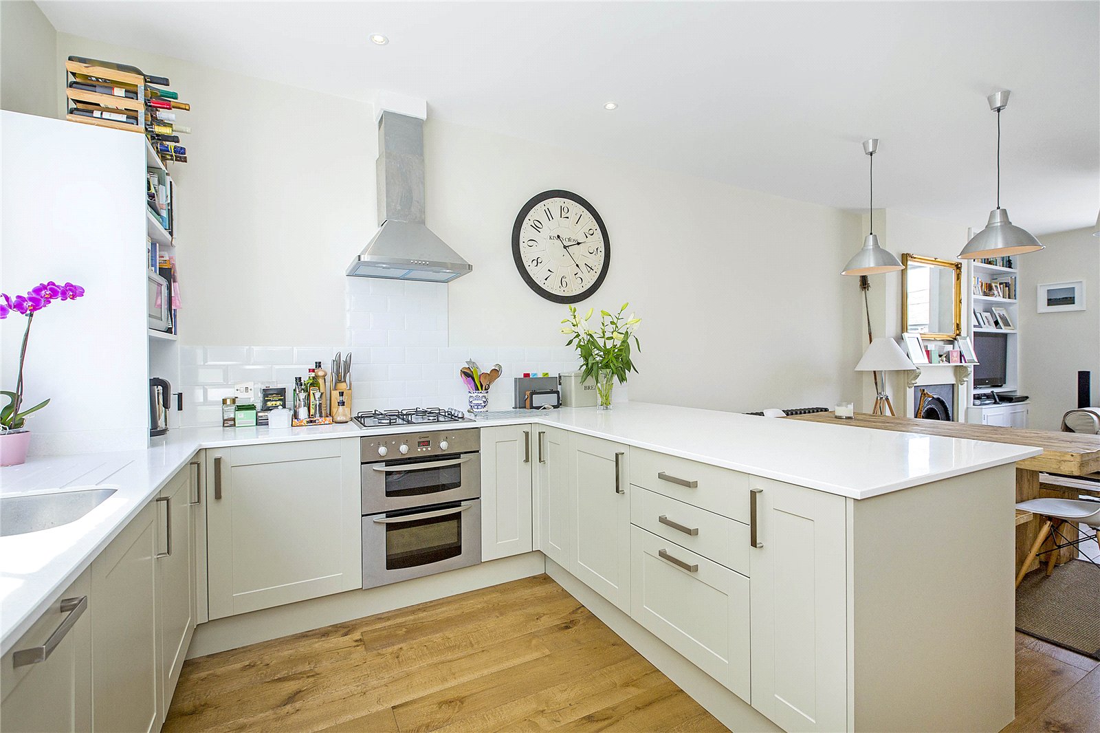 A bright and spacious three bedroom split-level flat set over the first and second floors of an impressive period property, boasting a generous dual-aspect open plan kitchen-reception room with integrated appliances, ample wall and base units, solid worktops and a breakfast bar alongside plenty of space for dining and entertaining. The property further benefits from three double bedrooms all offering built-in storage, two bathrooms, an additional W/C and a share of the freehold. Offered to the market chain free.