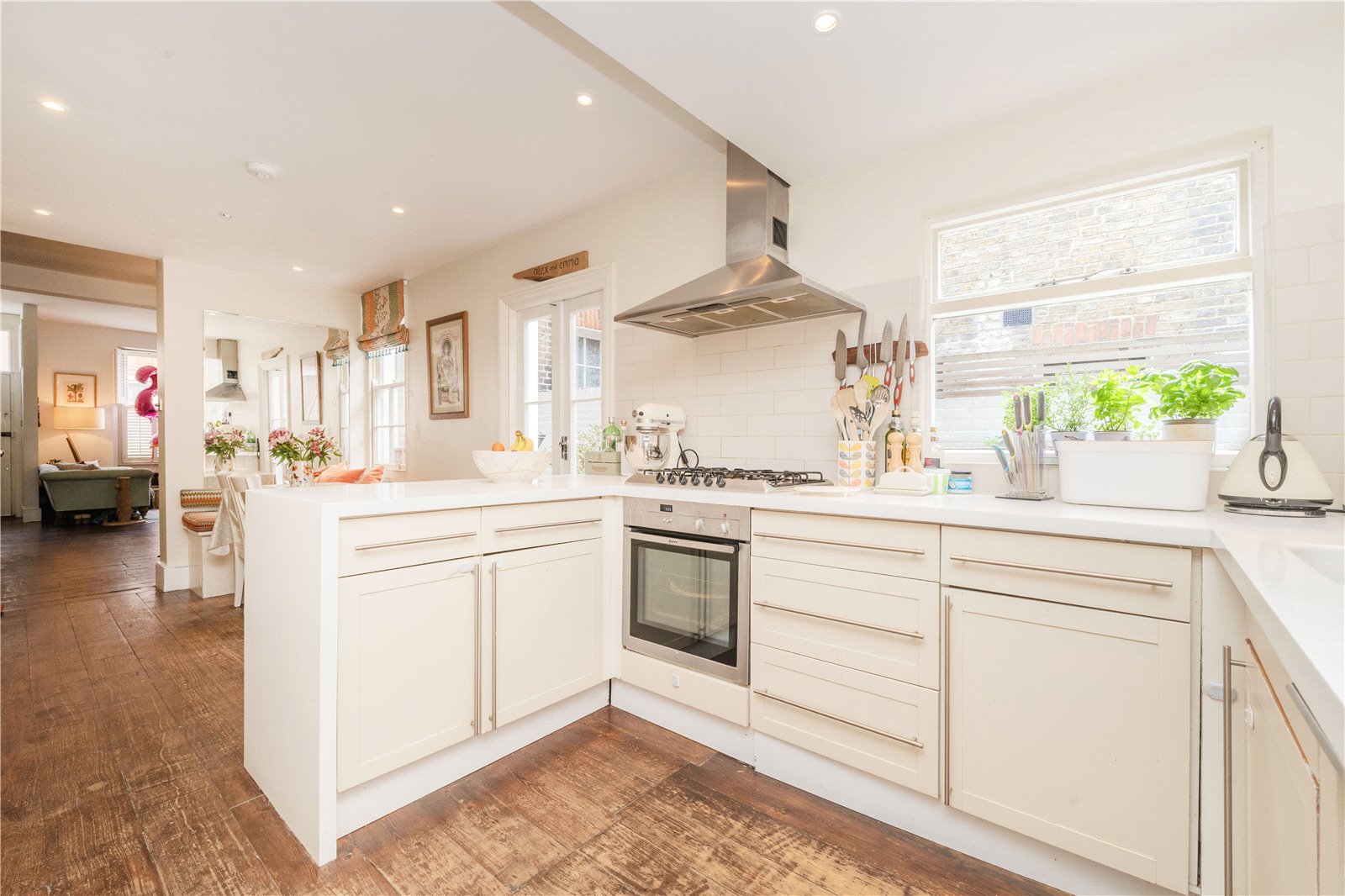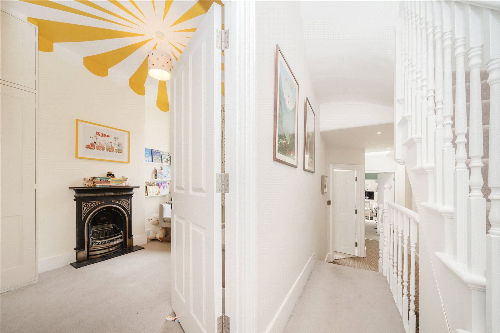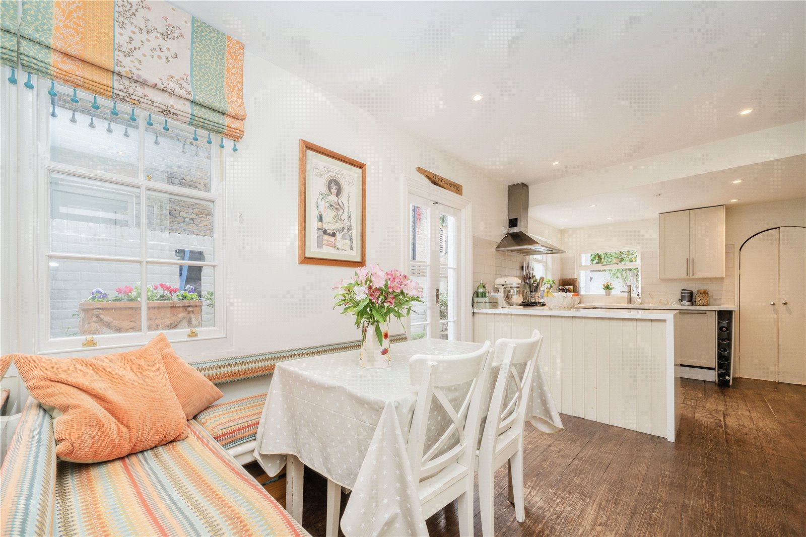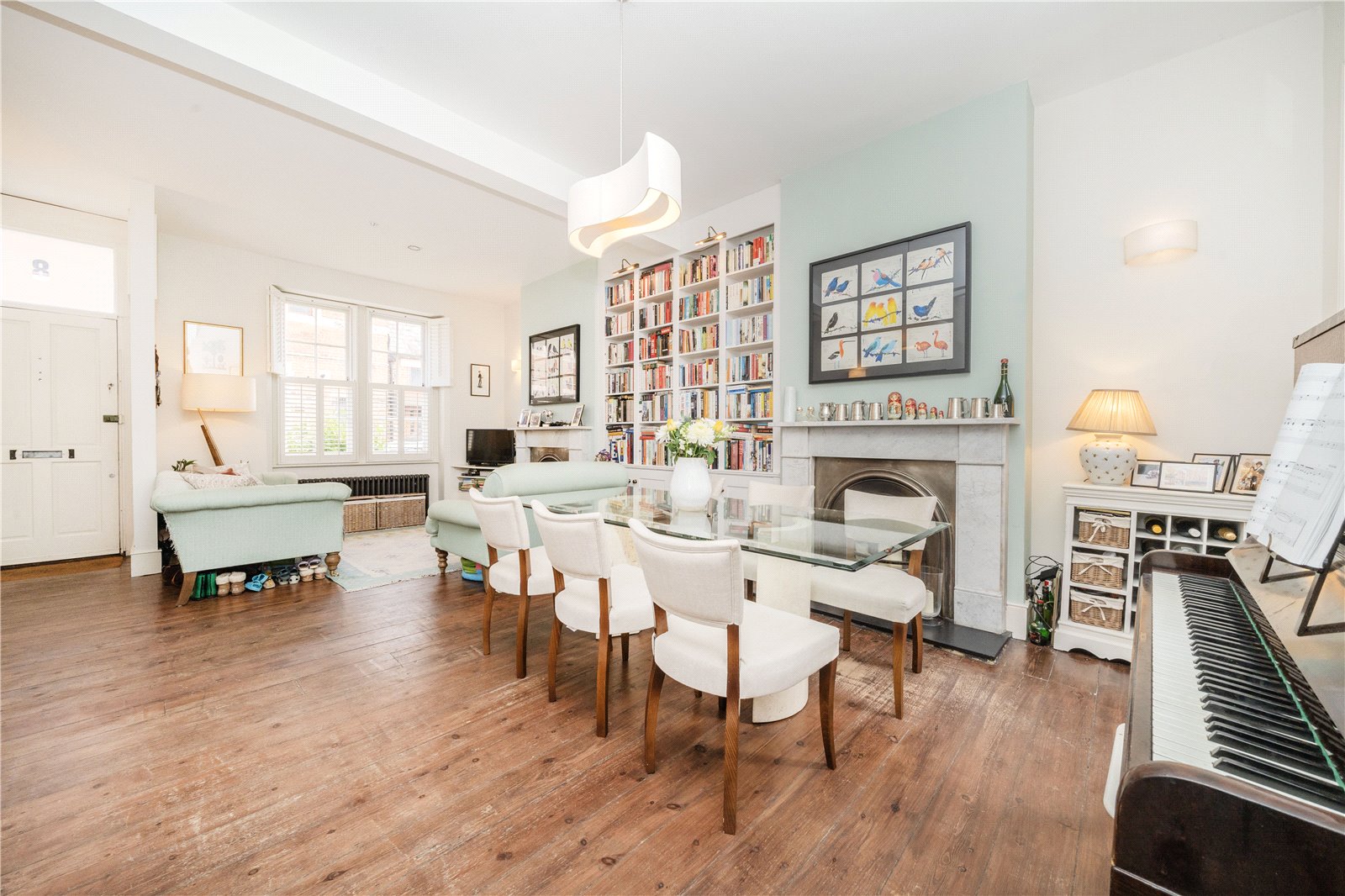 The property offers well-proportioned living space arranged over three levels, comprising four double bedrooms, two bathrooms, and a guest WC. Nelsons Row is a quiet street, conveniently located for the amenities of Clapham Common and just a short walk from the charming cafés and boutiques of Abbeville Village.