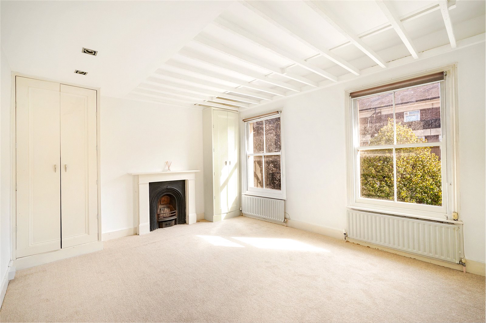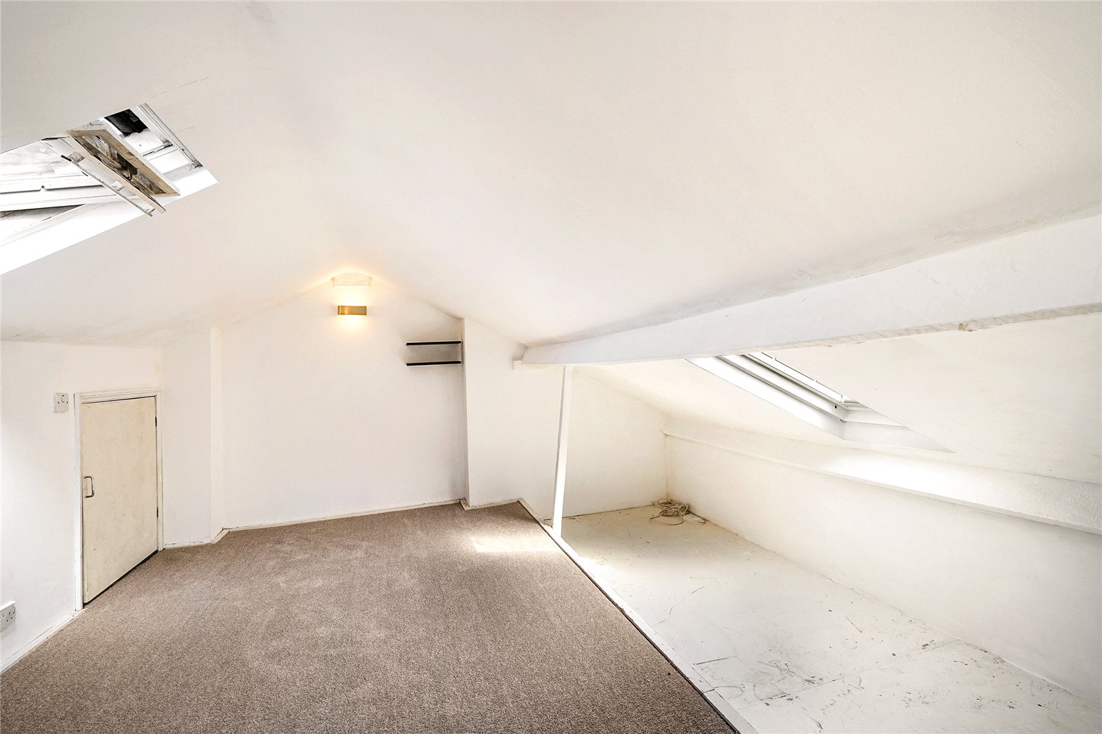 A bright and spacious two-bedroom apartment arranged over the upper floors, offering 1,050 sq ft of living space, with a full-width front reception room, galley kitchen, and loft space.