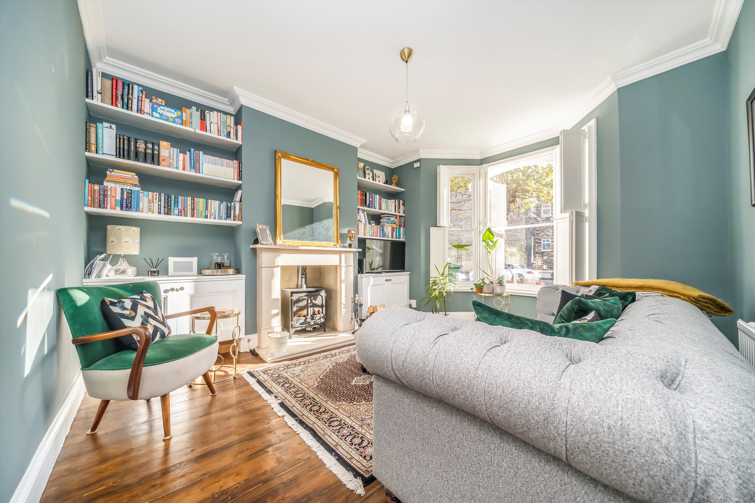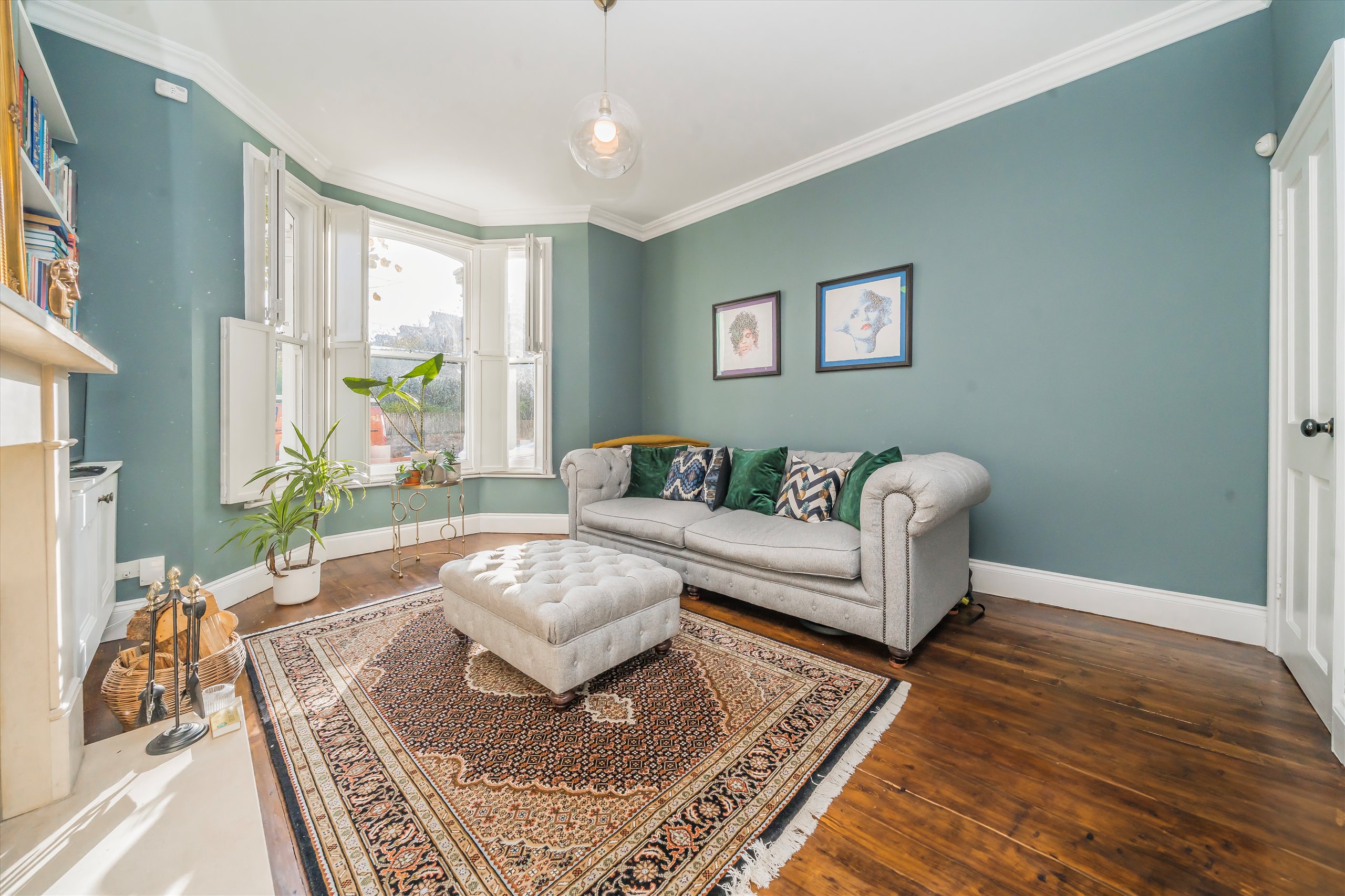 A beautifully presented one bedroom period conversion featuring a warm and inviting living room with a fireplace and charming period details, a family bathroom, a kitchen with space for dining, and a private rear garden.