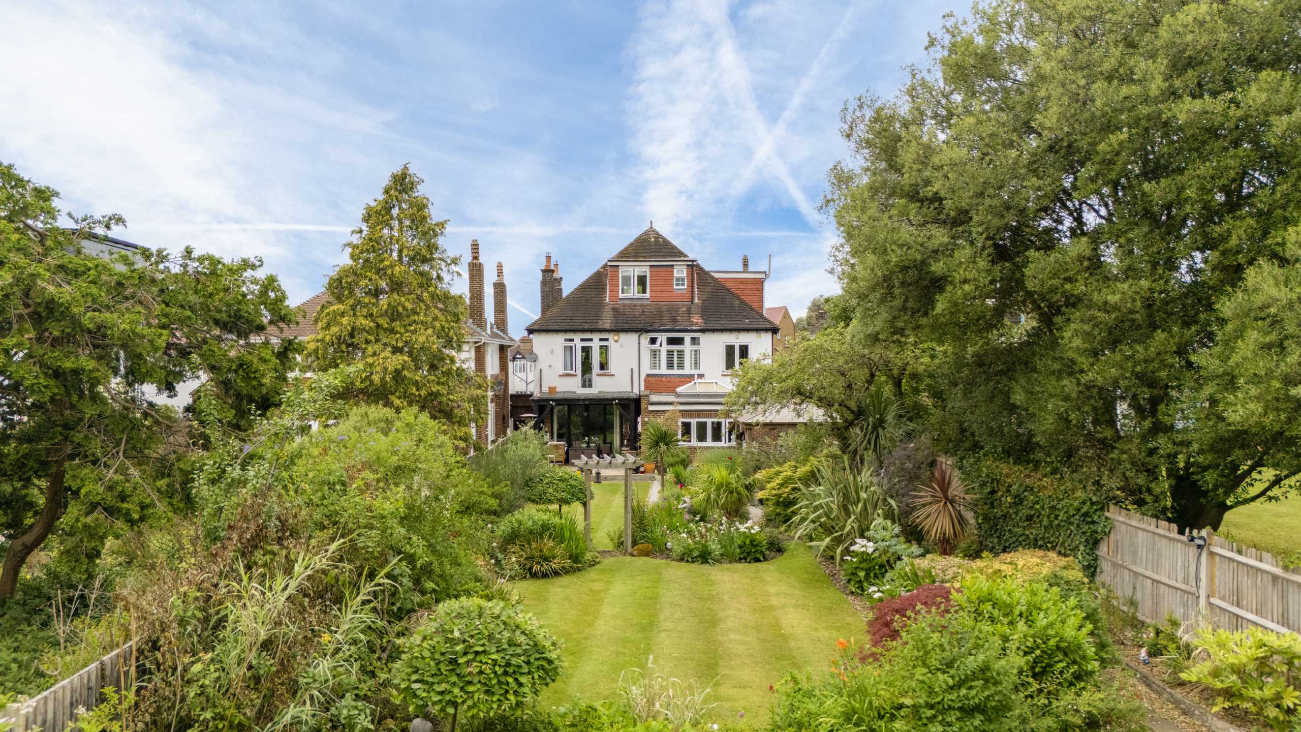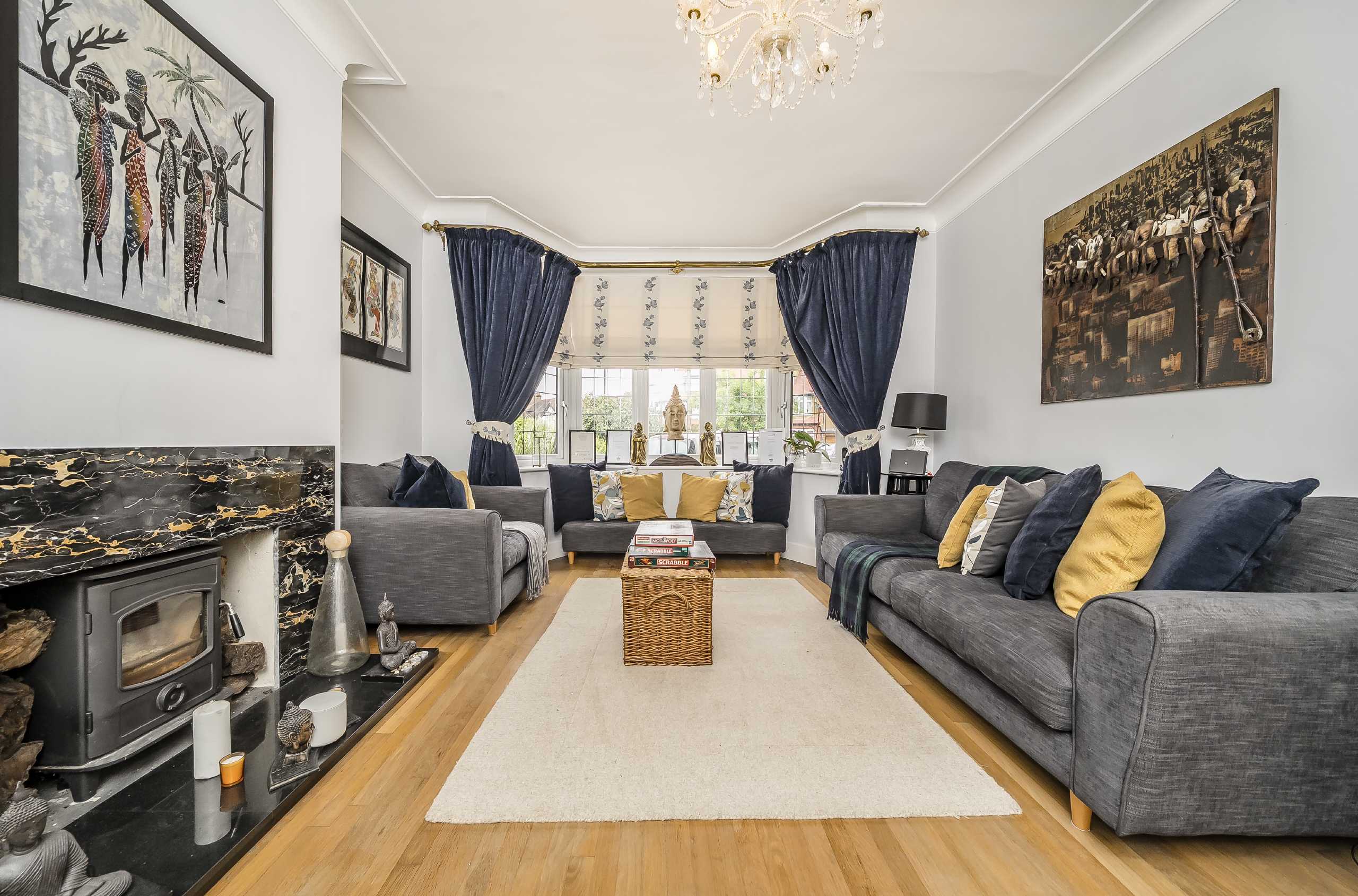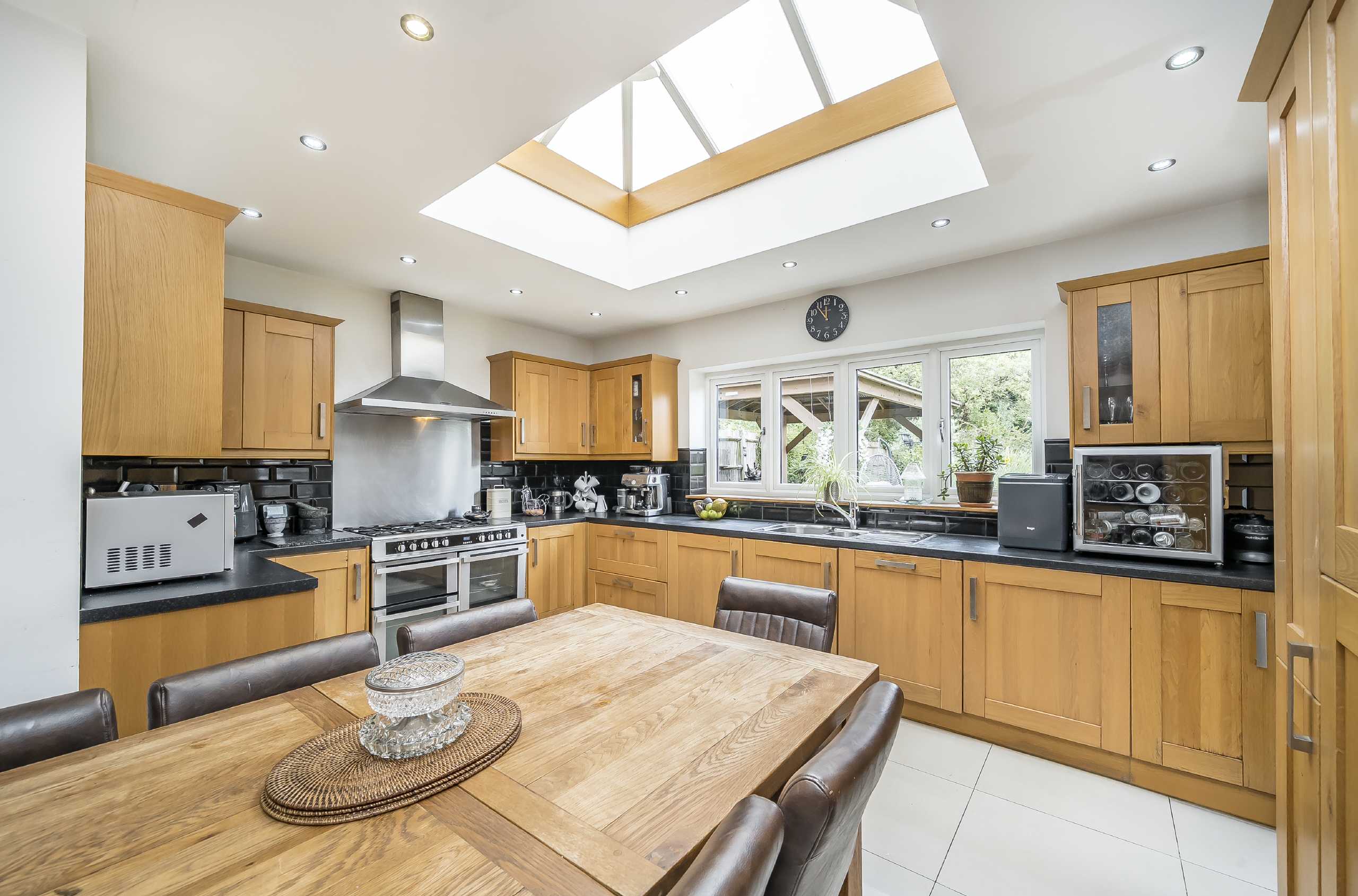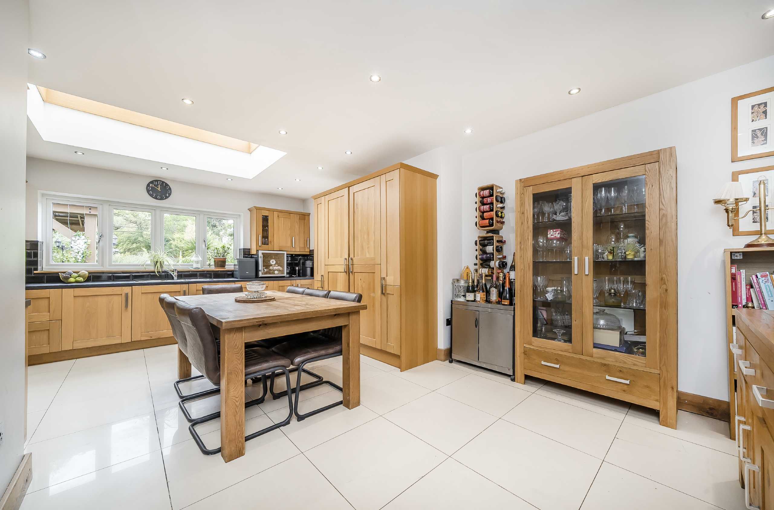 Set behind a generous driveway, the property welcomes you with a spacious entrance hallway that sets the tone for the well-proportioned accommodation throughout. The ground floor features a large reception room which opens into a second reception space, with stylish bi-fold doors that flow beautifully onto the garden. A generously sized kitchen also offers direct garden access, while a downstairs WC and a separate utility room.