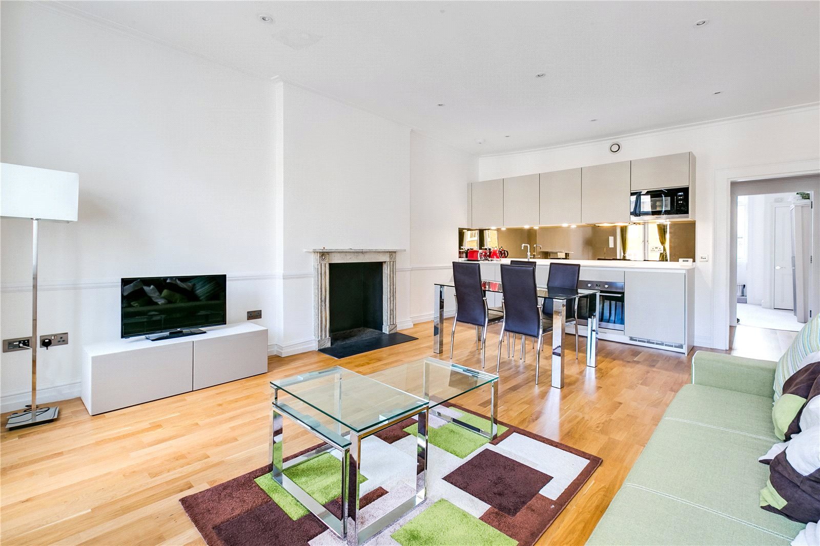 A beautifully refurbished double bedroom property located on this sought after street in Marylebone. The property is on the second floor of this period building and boasts a spacious open plan kitchen living room with high ceilings and a feature fireplace, a modern bathroom and good sized double bedroom with ample storage.