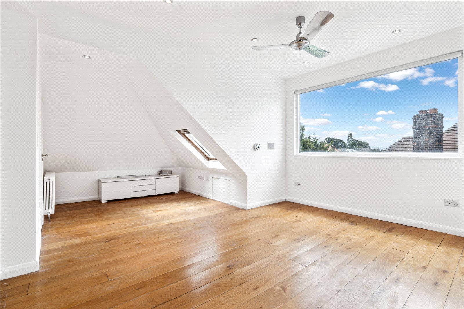 A light and spacious three double bedroom flat configured over two floors of this detached house, with a large reception room to the front, a separate kitchen, and one of three bedrooms on the first floor, with the additional two bedrooms on the second floor. Further benefits of the property include the communal garden, internal bike storage, off-street parking space, and it is available chain-free.