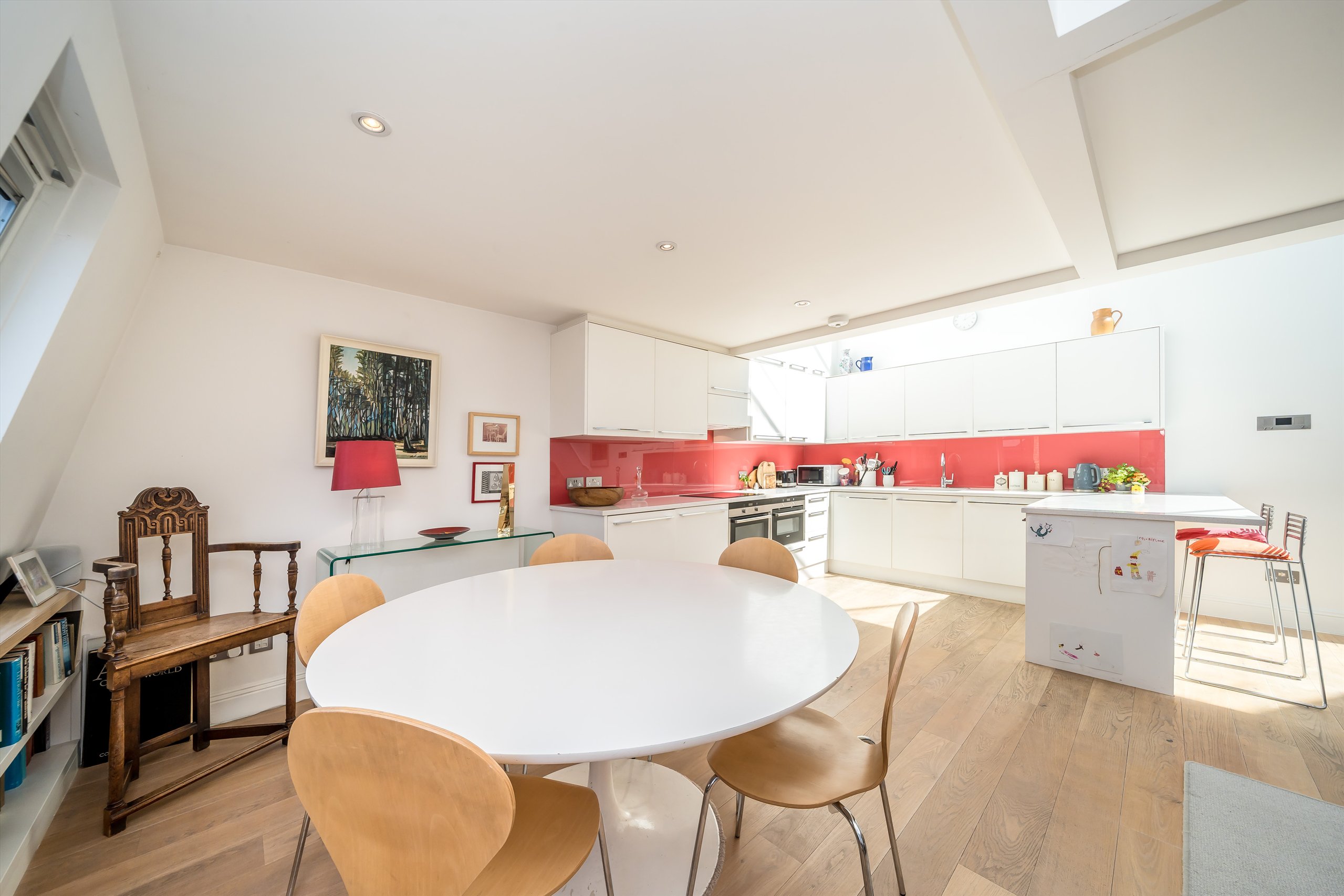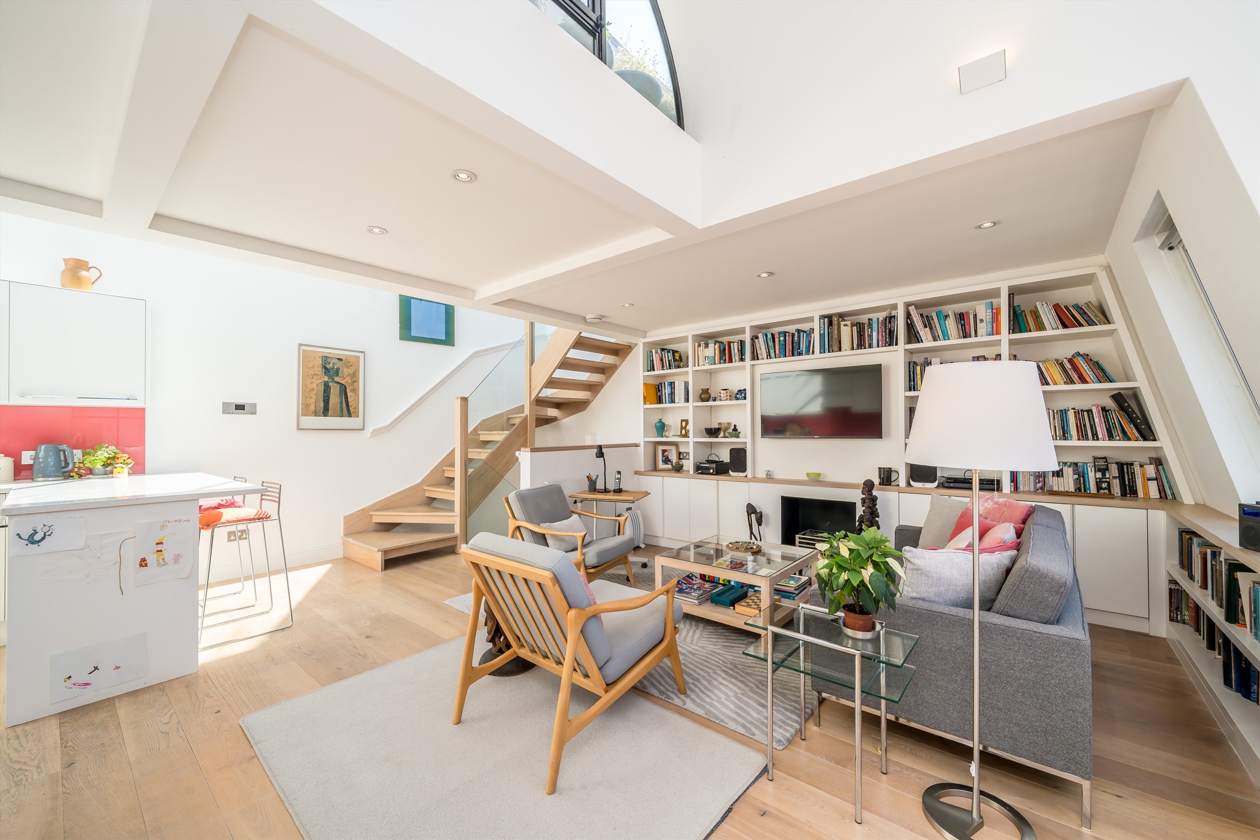 A spacious four-bedroom mews house presented in excellent condition boasting a substantial private roof terrace and exceptional natural light throughout, located moments from Kensington High Street.