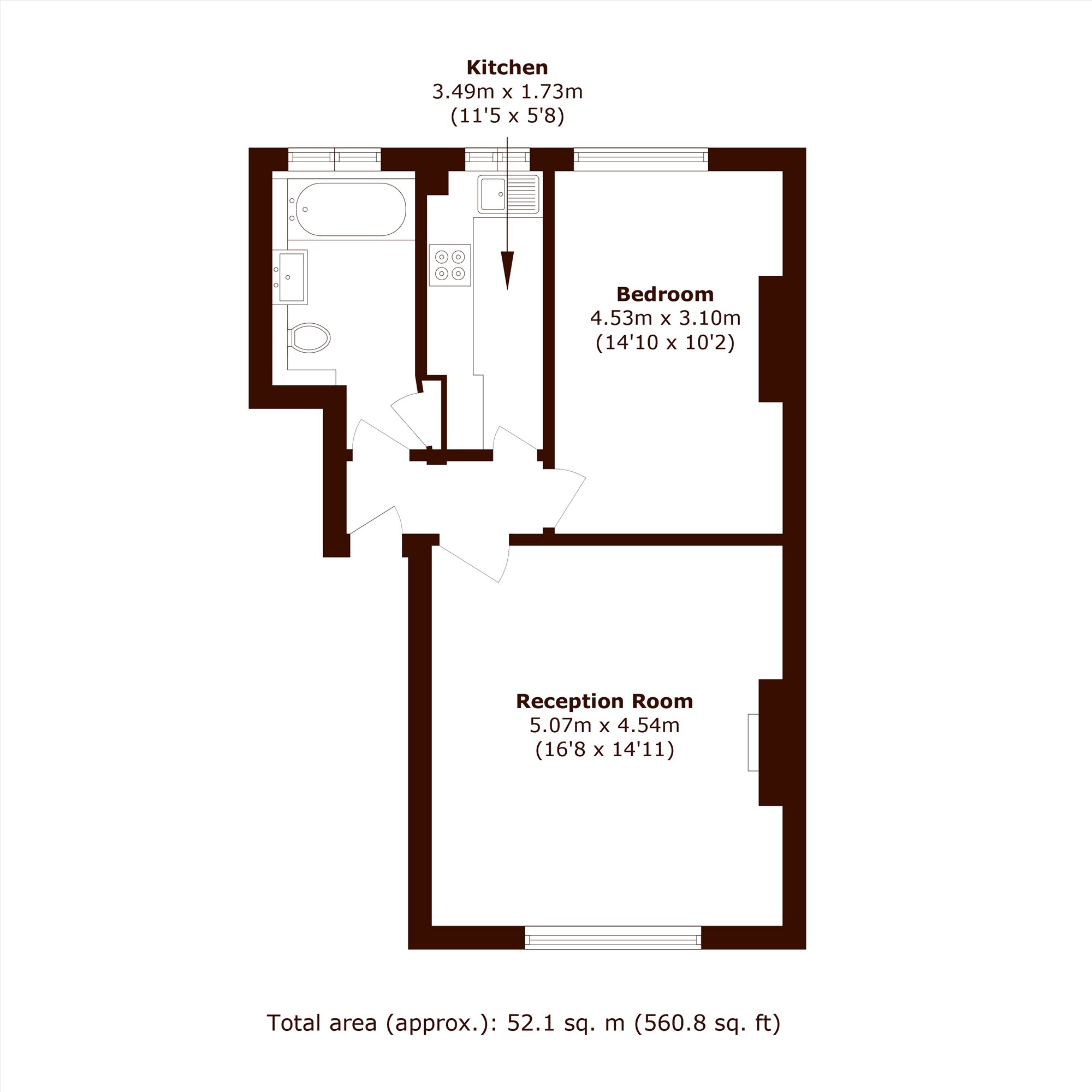 Set on the raised ground floor, a beautiful one bedroom apartment offers approximately 560 square feet and is in excellent condition throughout.