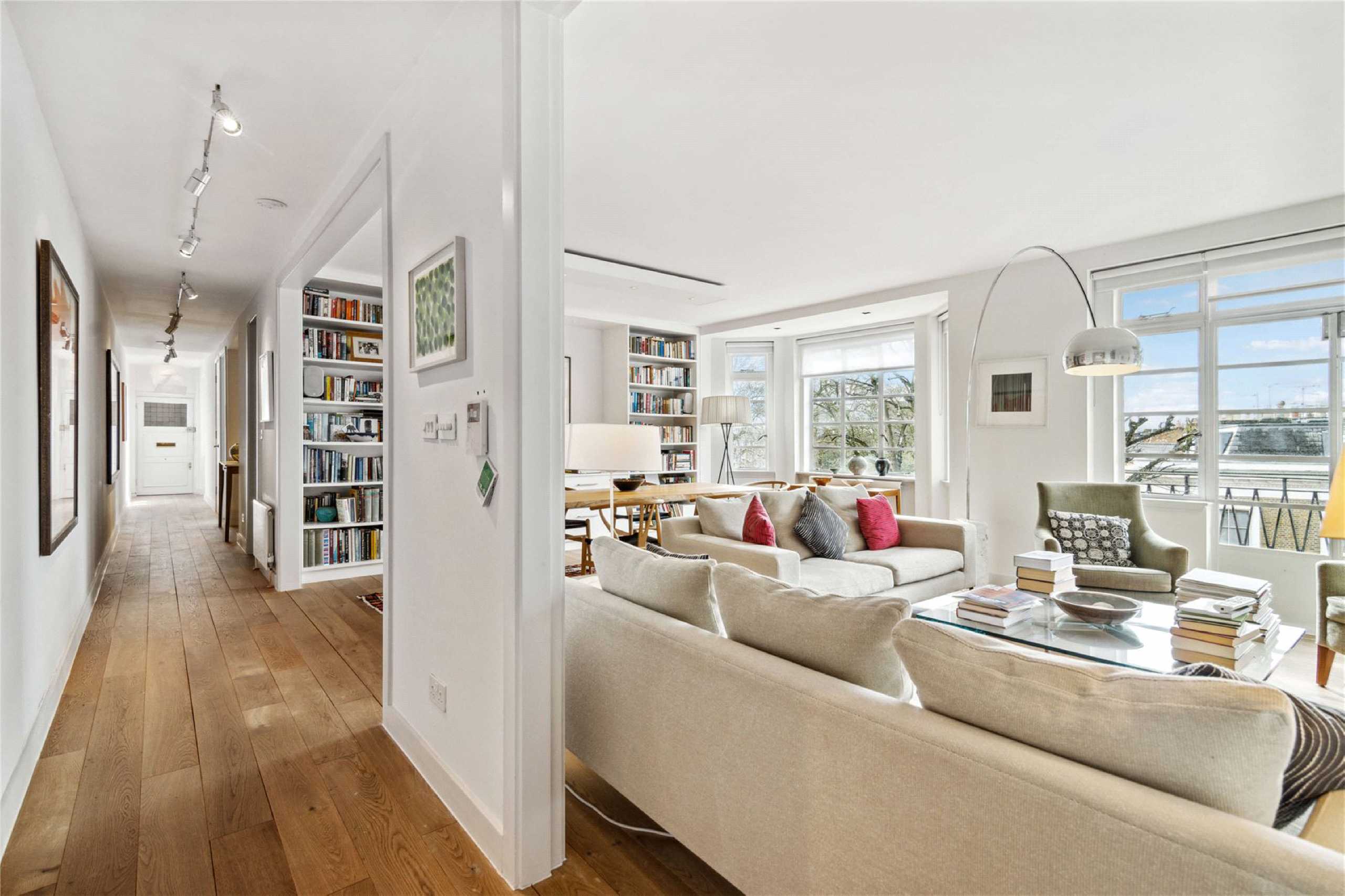 The apartment is presented in excellent condition and offers expansive green views to the west, which are best appreciated from the balcony leading out from the generous reception room. The two well-proportioned bedrooms, both with en-suite bathrooms are at opposite ends of the apartment. There is a well-equipped eat-in kitchen and a separate utility room.