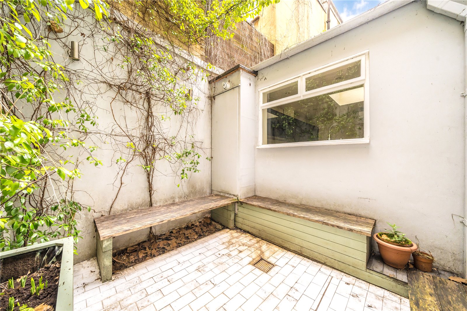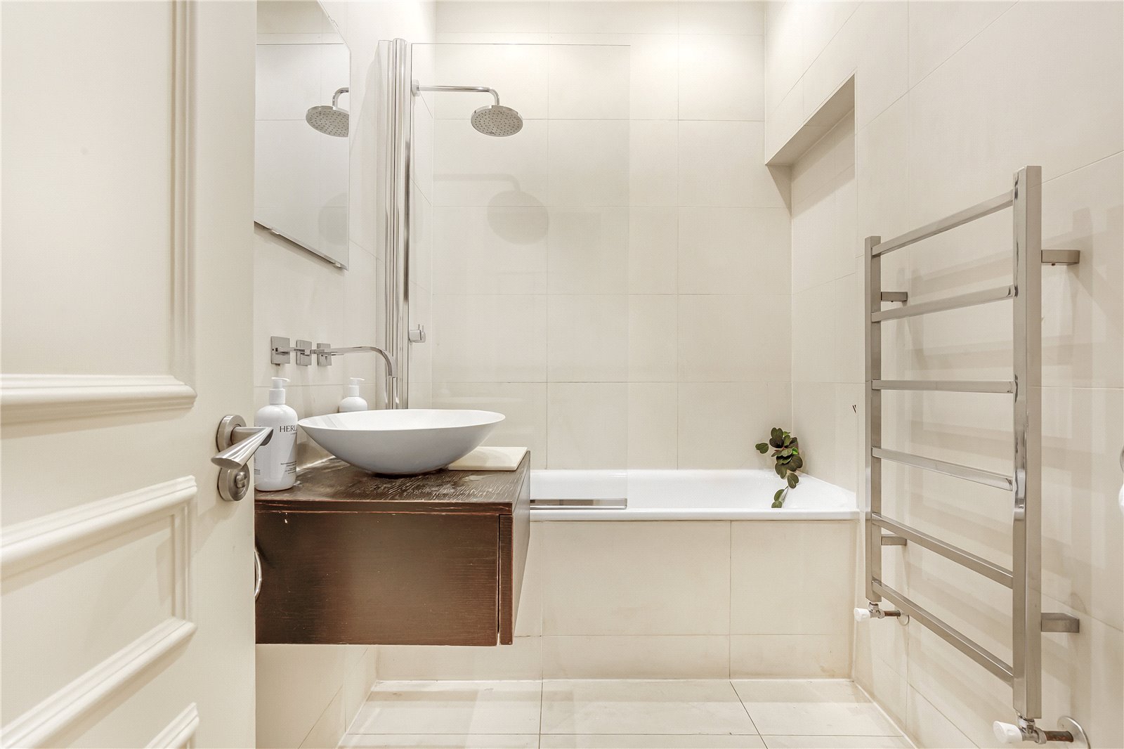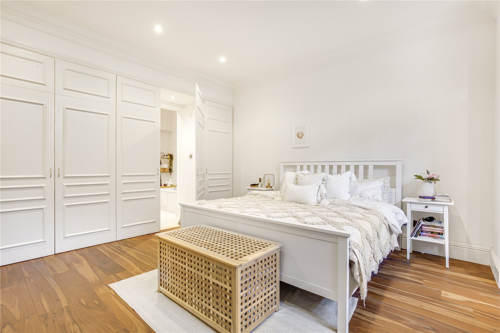 The property is entered via its own private doorway leading directly into the impressive hallway. The reception and dining rooms are laid with beautiful walnut wooden flooring, offering a fantastic space for entertaining (measuring approx. 21.7ft x 30.6ft combined) and have direct access via French double doors to the courtyard garden. The stunning fully fitted kitchen is conveniently located adjacent to the main reception with views onto the courtyard. The bedrooms include a large master suite with generous fitted wardrobes covering two walls and an elegant en-suite bathroom. The second double bedroom is also considerable and gives access to a another private courtyard. There is a second smart bathroom that aids the remaining accommodation. There is also the added benefit of a large storage vault located opposite the door that enters the flat. The property has access to the impressive and verdant Courtfield Gardens.