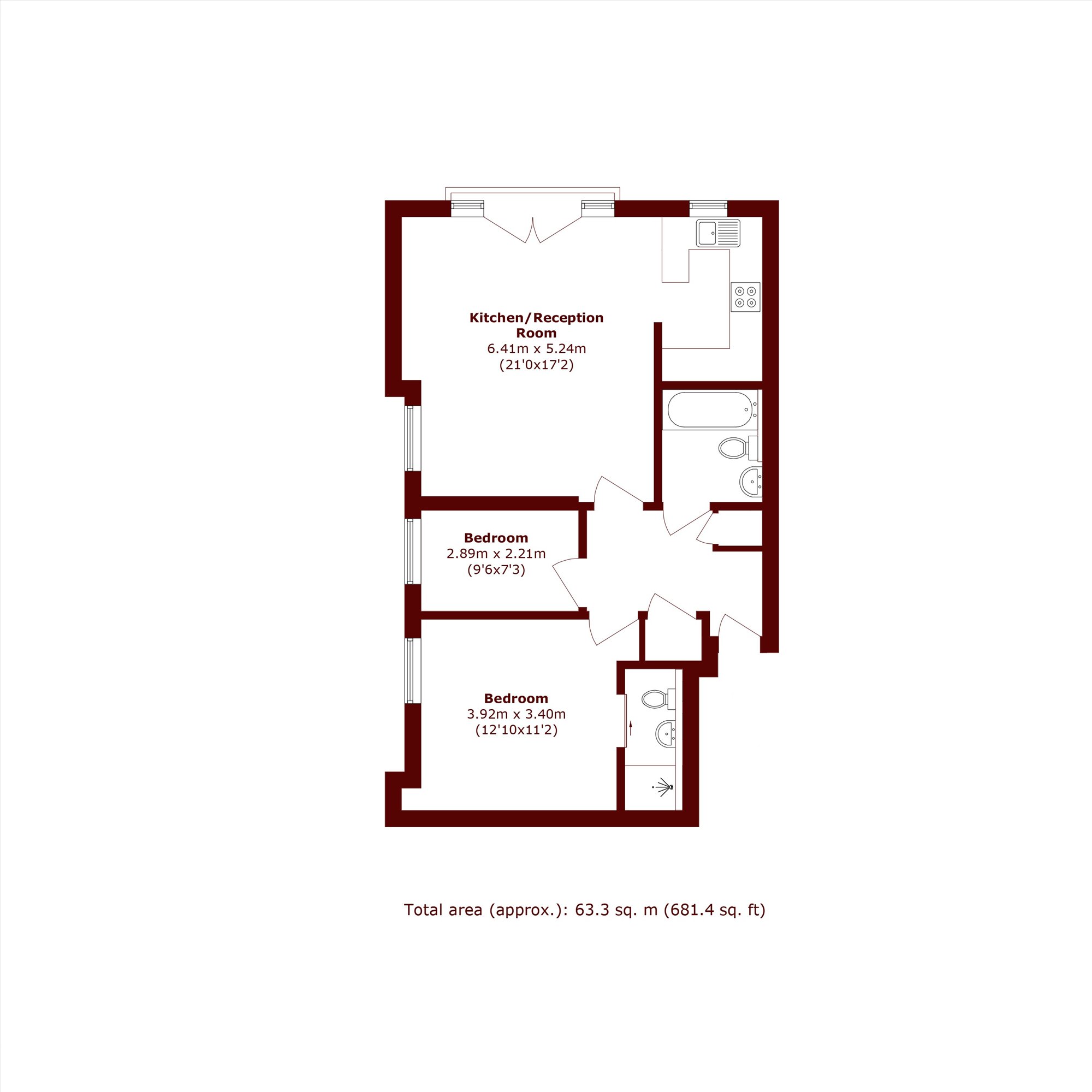 A fantastic two bedroom ground floor apartment spanning 681 sq ft, centred around a bright and spacious open-plan kitchen/reception room with plenty of space for dining.
