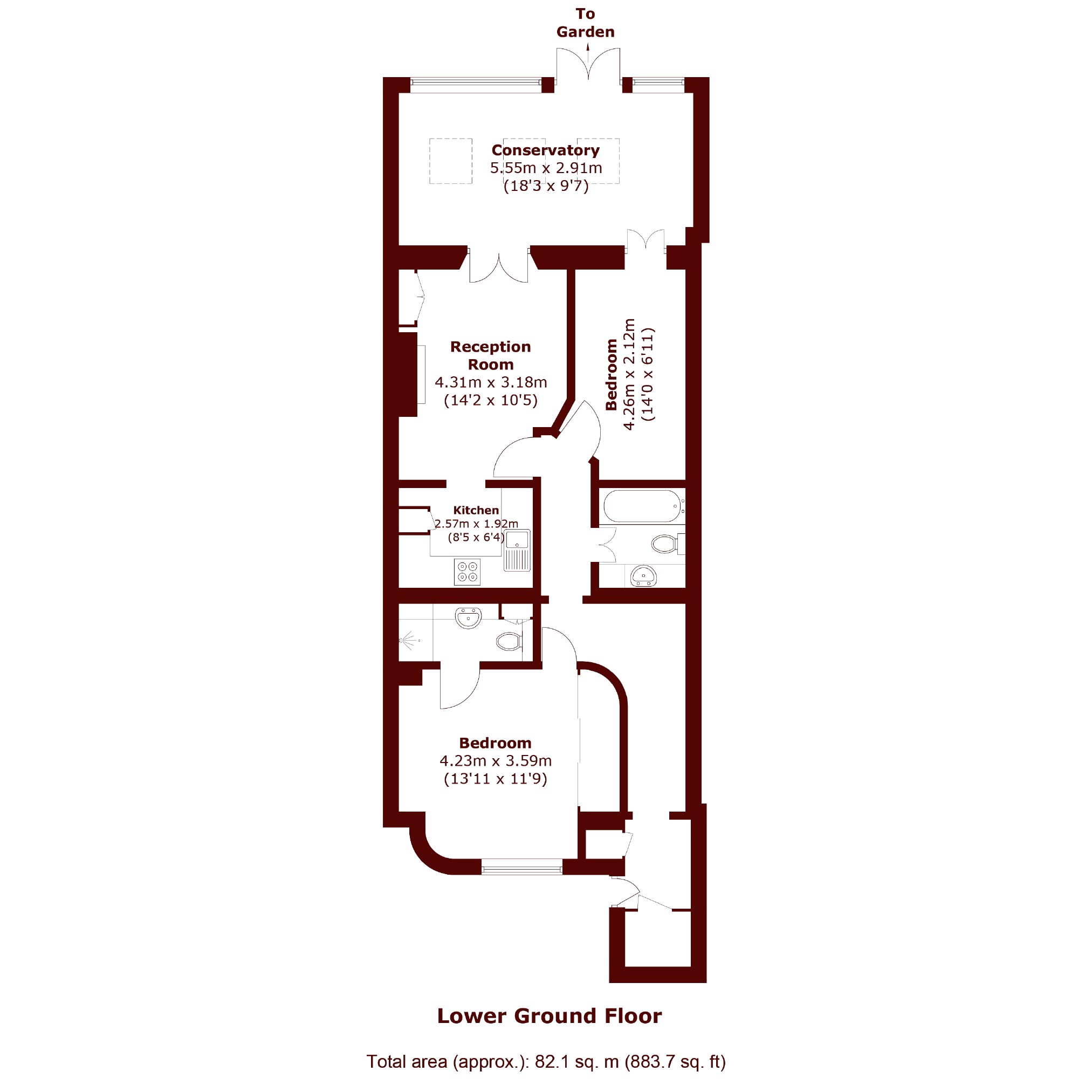 This well presented two double bedroom, two bathroom garden flat features a bright reception room leading to a hardwood conservatory/living space and modern kitchen. The property benefits from a south facing private garden with mature planting, offering excellent privacy and space to relax.
