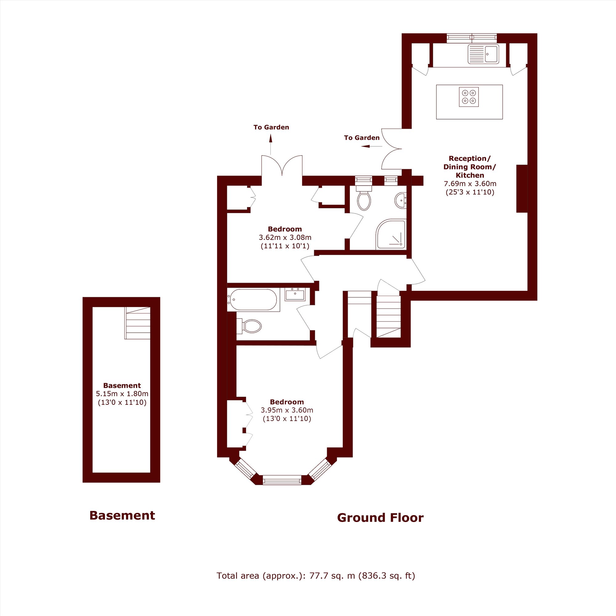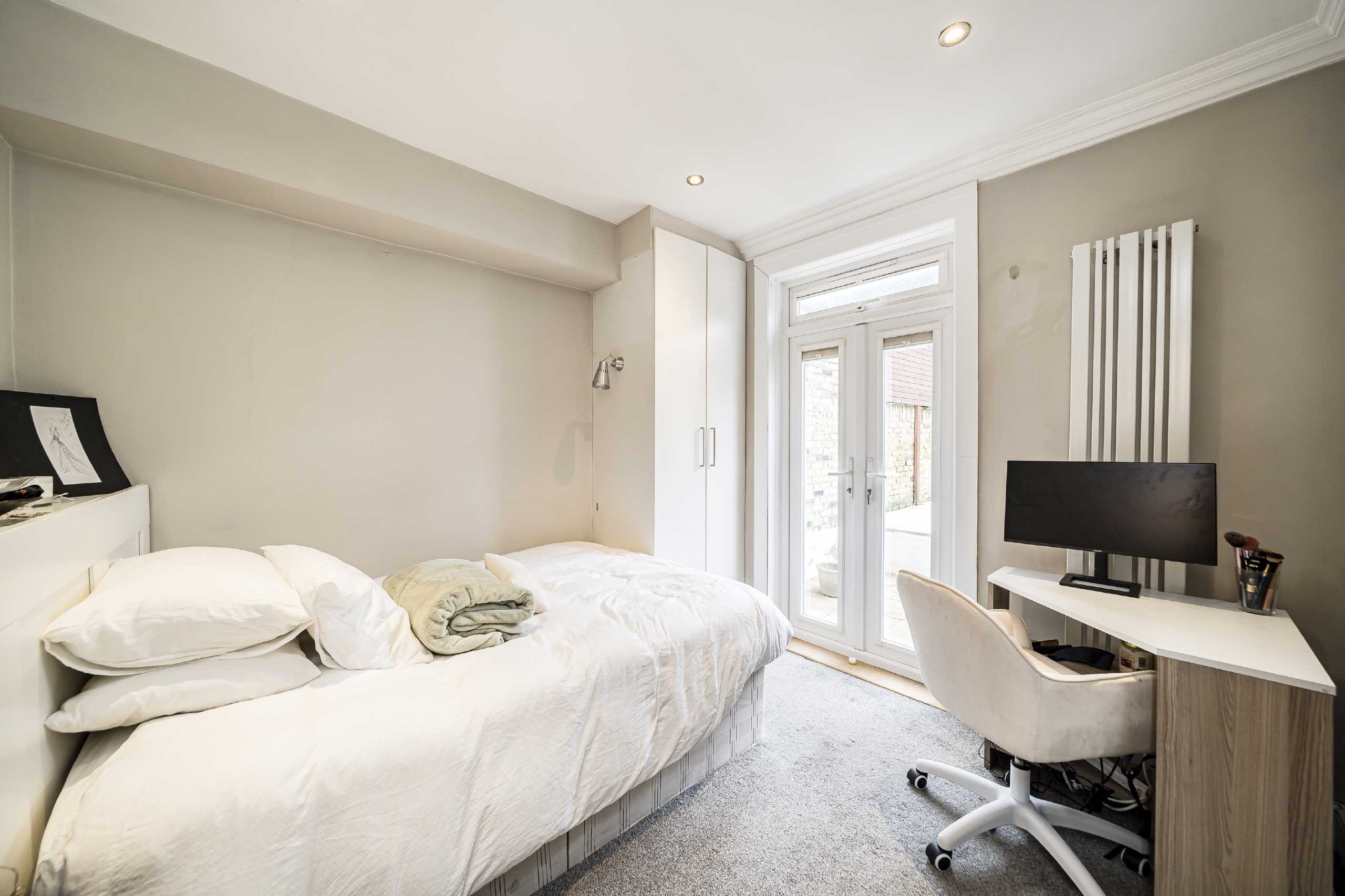 Two large double bedroom are located to the front of the property, both benefitting from high ceilings and walk in wardrobes, with the master bedroom boasting an en-suite bathroom and double doors leading onto the private garden. A family bathroom sits between the two bedrooms.