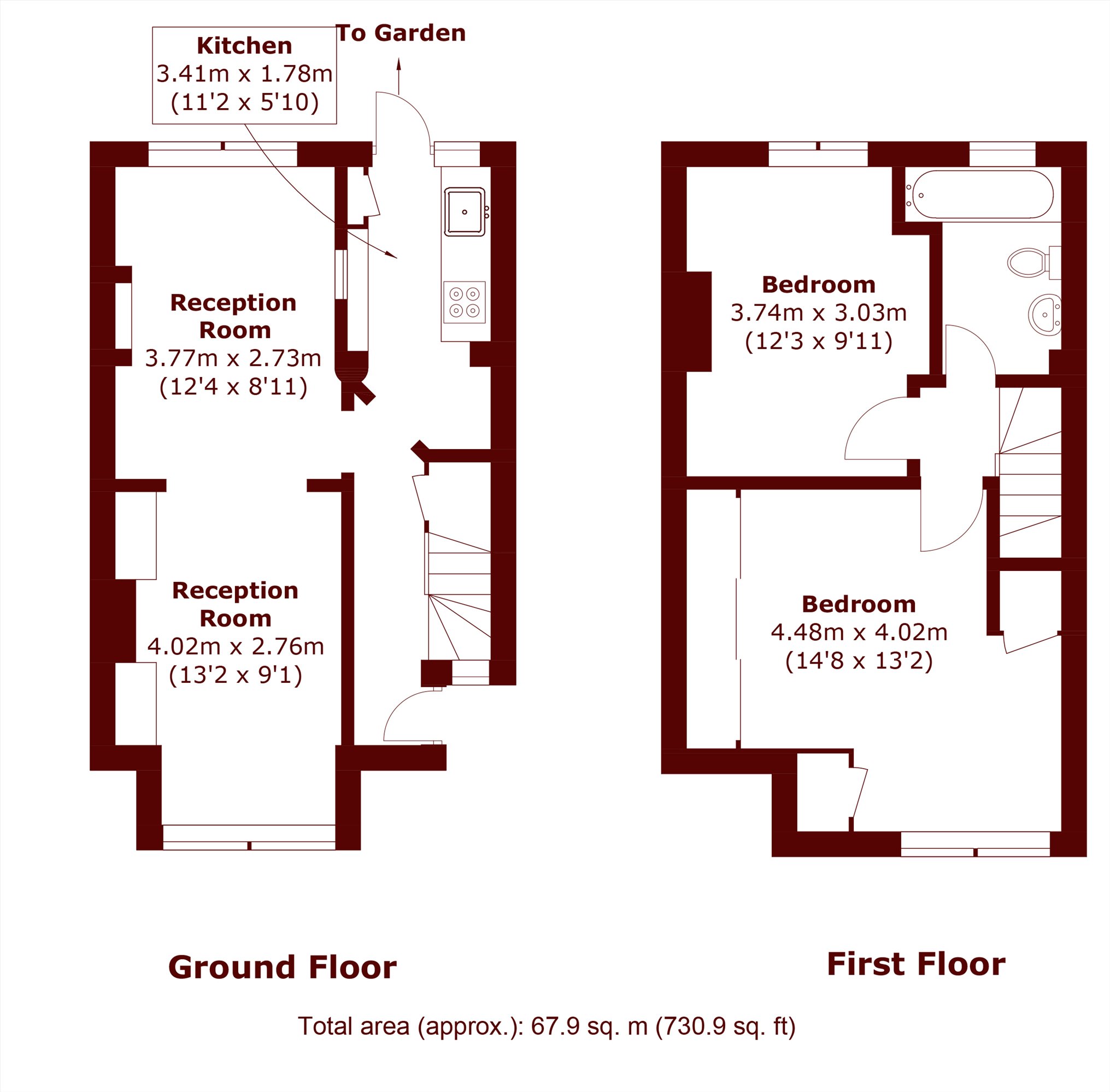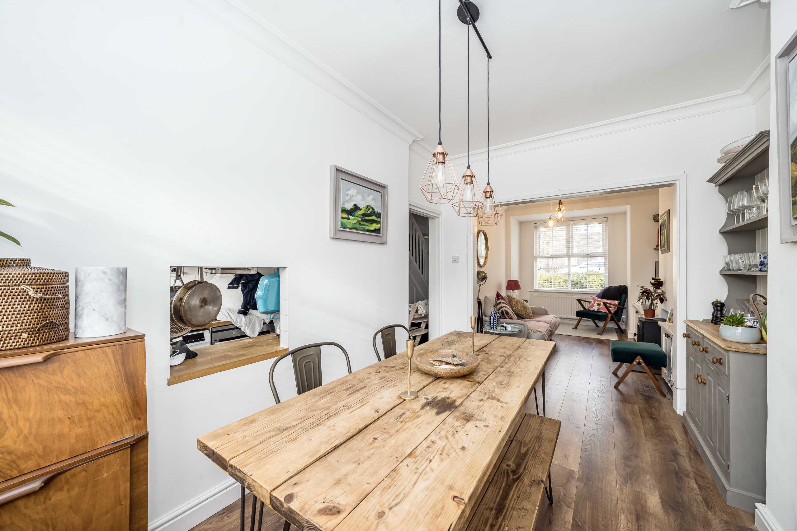 This charming property offers a spacious interior, with the ground floor making the perfect living space. The reception room is located at the front of the property and benefits from large windows and high ceilings which accentuate the natural light. This continues through to the dining area, which is partially separated by a cased opening, creating a flowing transition between the two spaces. Completing this floor is the fully fitted galley kitchen, which has direct access to the private garden. The garden is south-west facing and neatly landscaped with partial decking. The first floor is home to two spacious double bedrooms, and a family bathroom.