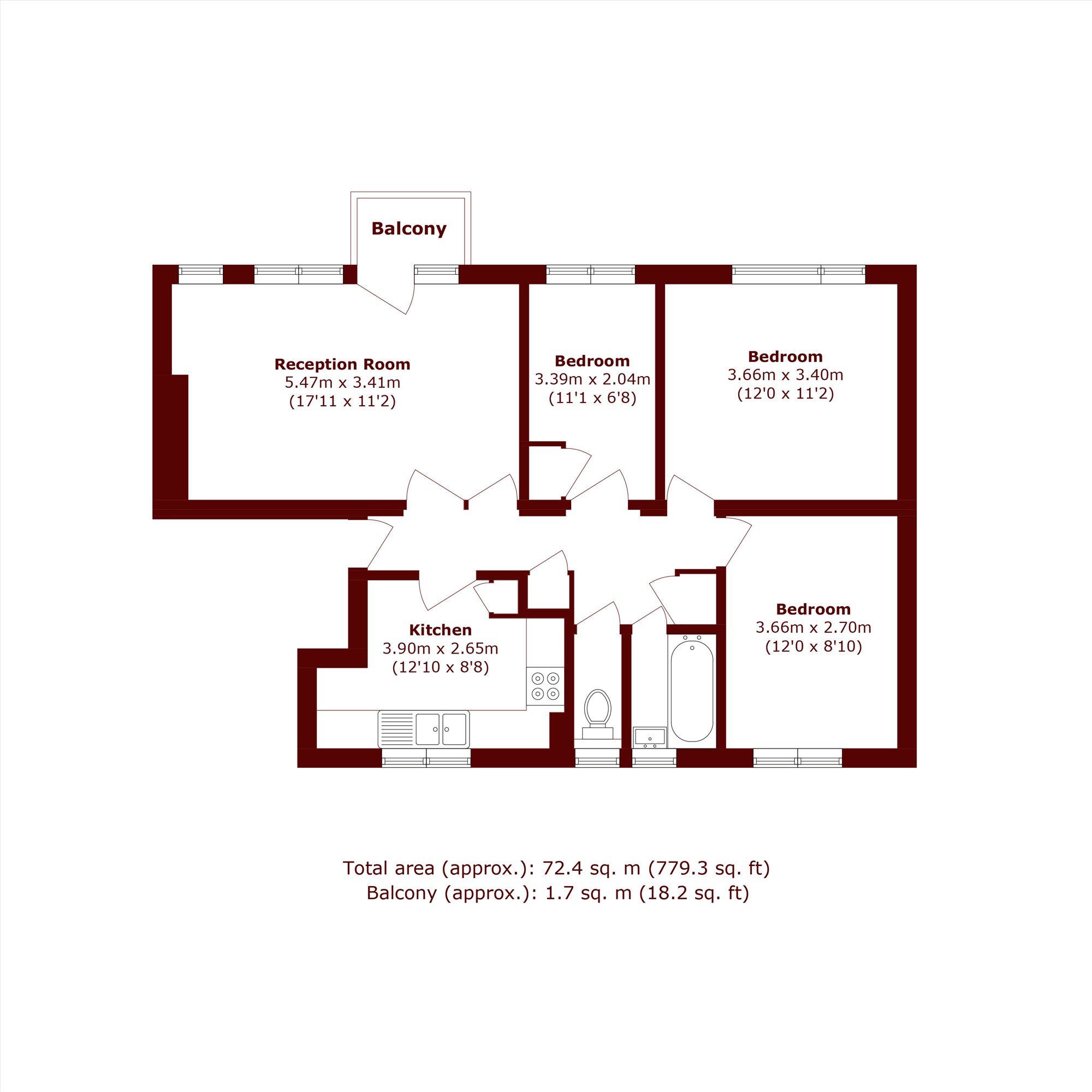 The property comprises spacious lateral accommodation including three bedrooms, a large reception room, a generous kitchen, a family bathroom and separate w/c. The property further benefits from a private balcony and a large communal garden. Offered to the market chain free.
