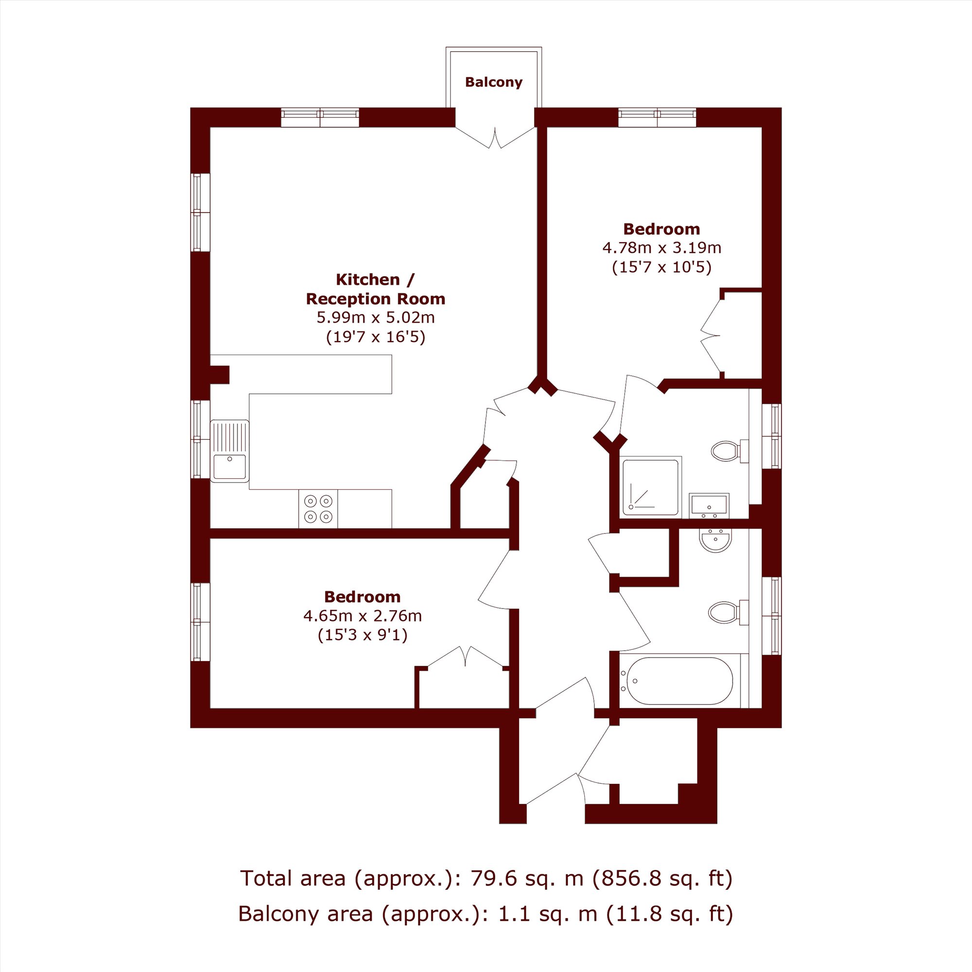 This superb, top floor apartment with lift access is arranged over 856sqft, comprising an open plan kitchen/reception with private balcony, two double bedrooms, a three-piece family bathroom, an en suite bathroom with walk-in shower and ample built-in storage space.