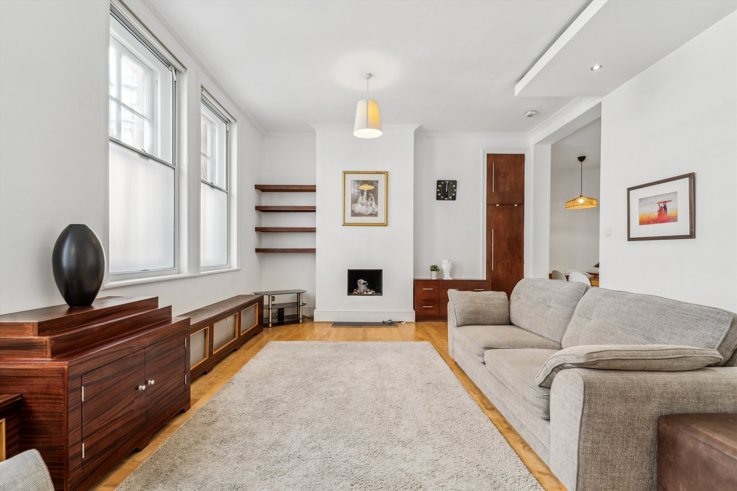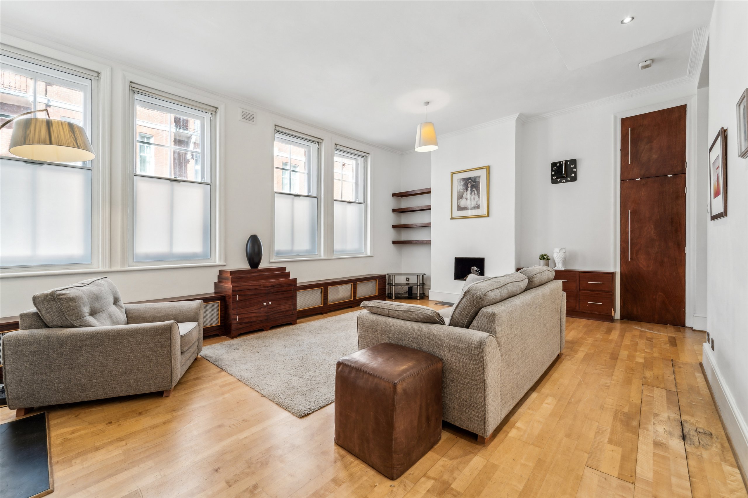 A charming and bright one bedroom flat on the ground floor of this prestigious mansion block. This flat has an open plan, spacious kitchen and living area and would make an excellent pied a terre or home to live in.