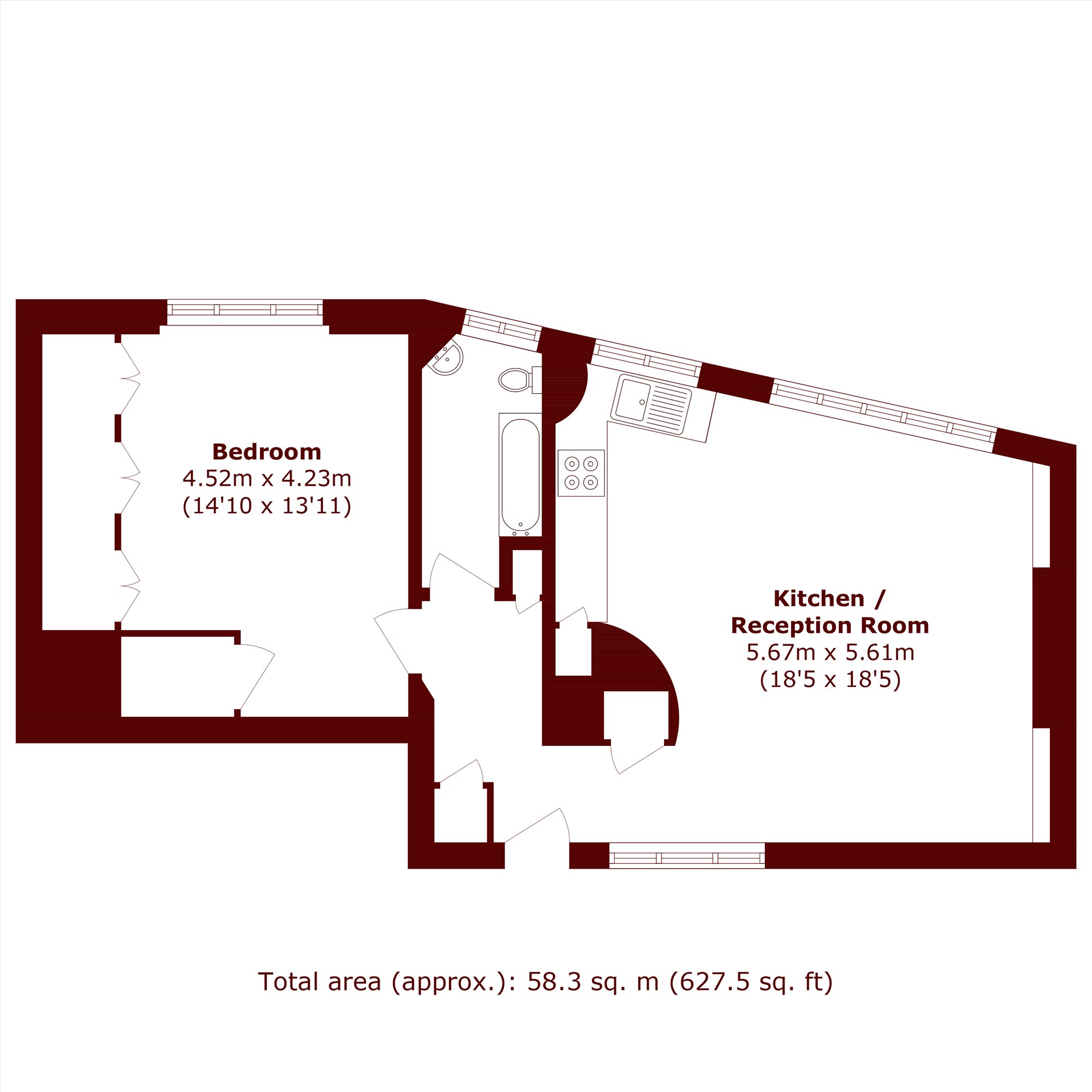 A fantastic first floor apartment comprising of a spacious open plan reception room and kitchen, double bedroom and a family bathroom. Benefiting from an abundance of natural light and access to shared outdoor space, this superbly located apartment is offered to the market chain-free.