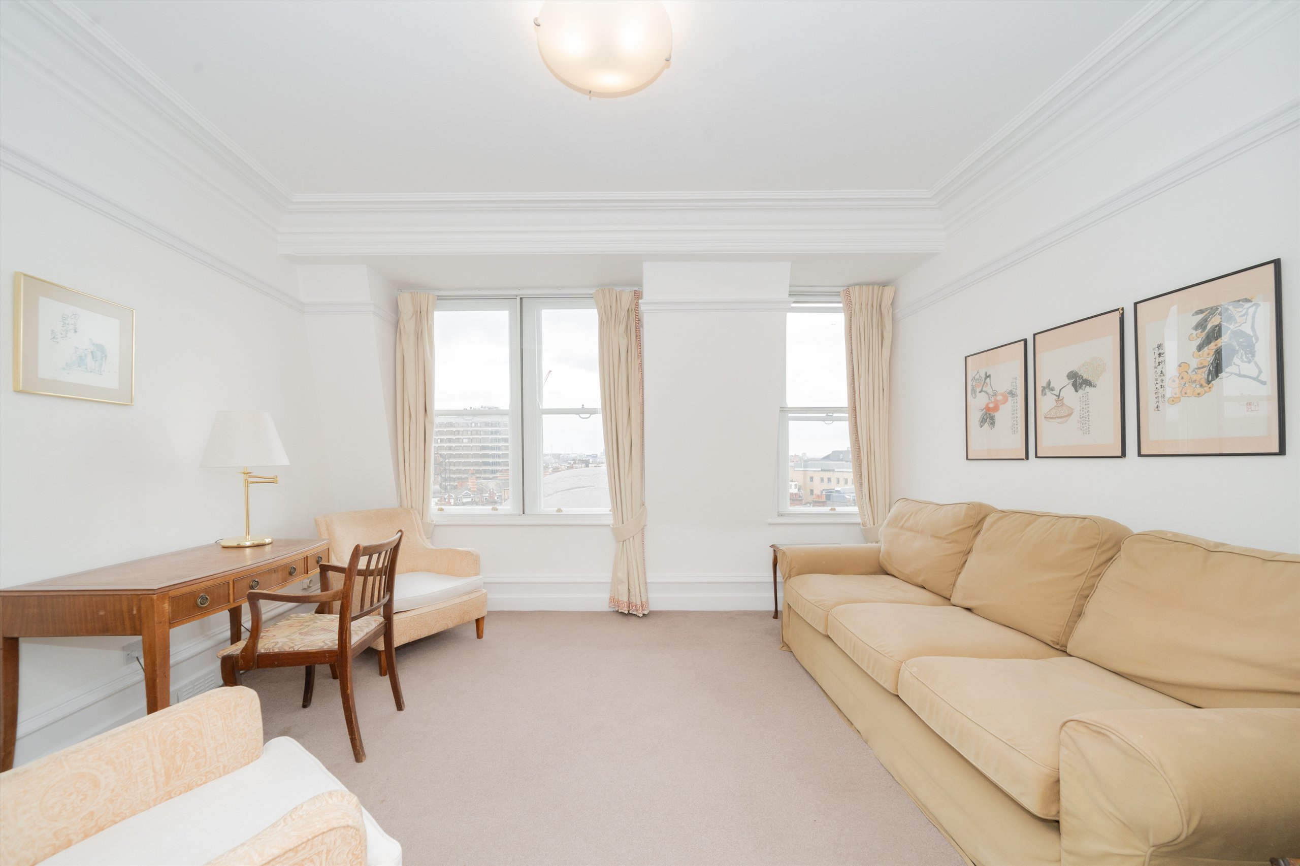Positioned in one of London's most sought-after addresses, this beautifully presented apartment combines classic mansion block charm with refined modern comfort. The spacious reception room is bathed in natural light, with large windows framing uninterrupted vistas over Knightsbridge's historic architecture and the world-renowned Harrods facade a spectacular backdrop both by day and when illuminated at night.