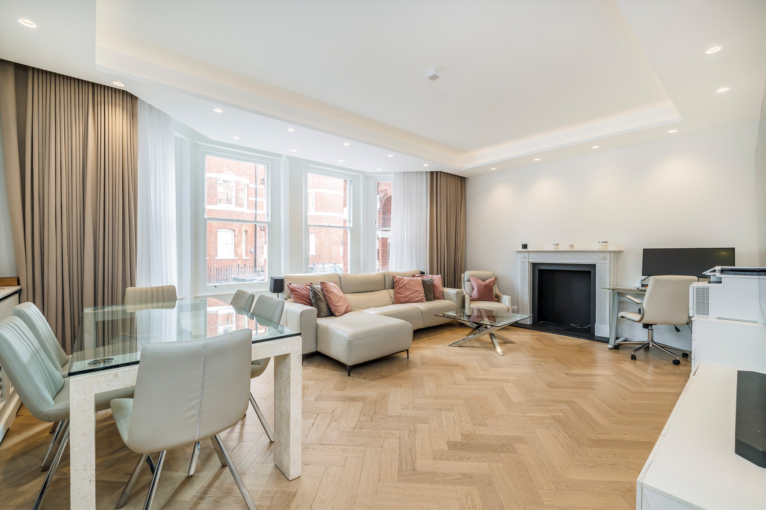 A truly breathtaking fully refurbished four-bedroom three-bathroom apartment positioned on the upper ground floor of this striking Victorian red-brick mansion block benefitting from a residents private garden square. The lateral space of circa 2100SqFt offers four well proportioned double bedrooms, three luxury en suite bathrooms with a separate office/dressing room to the principle suite. The large front-facing reception room and separate fully integrated kitchen with gaggenau appliance just across the hall makes it ideal for entertaining.