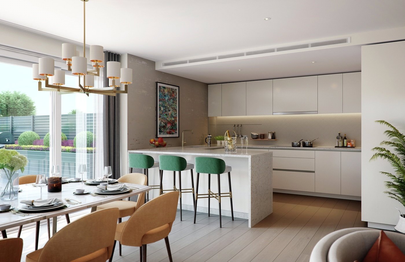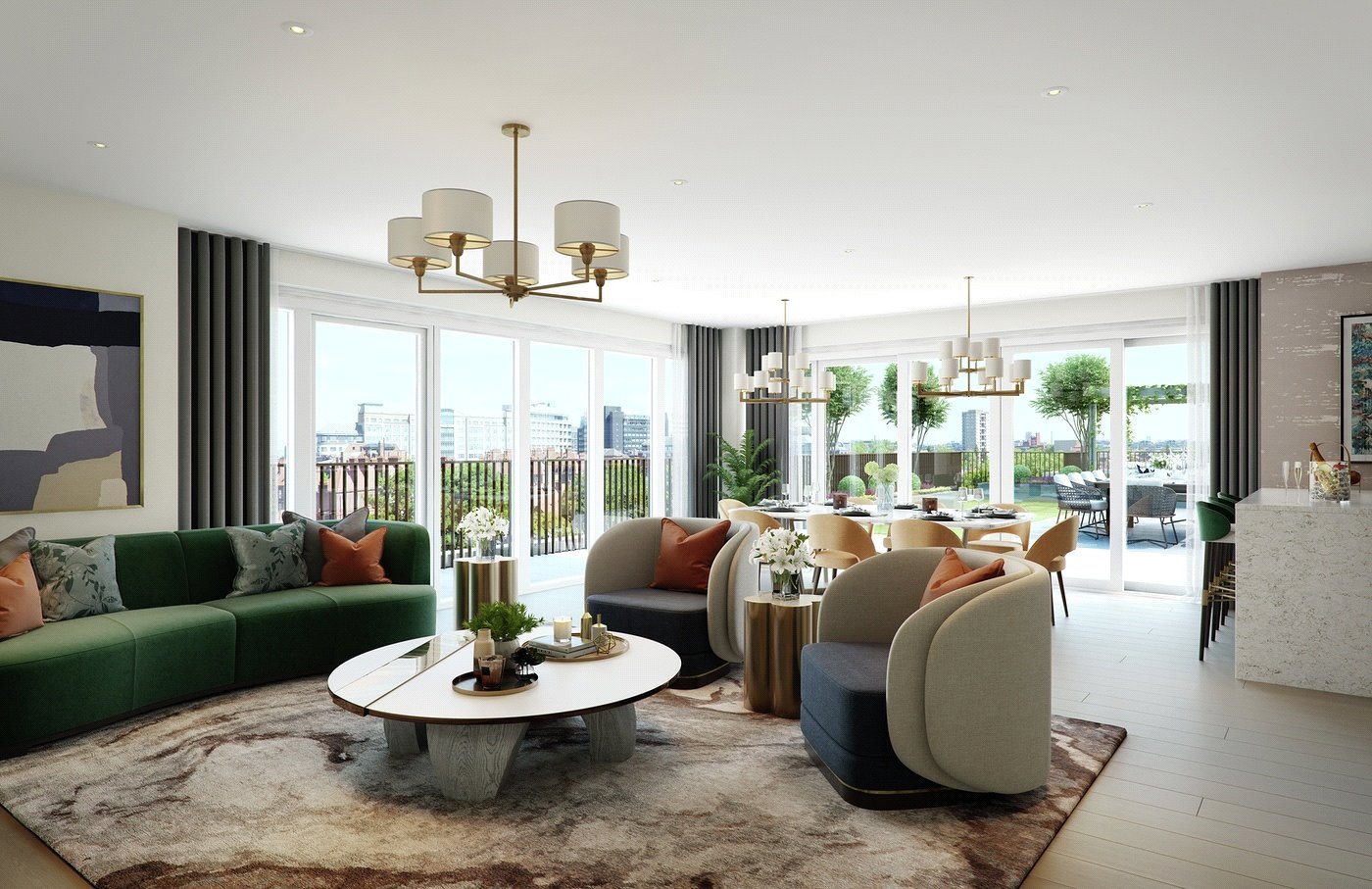 Each apartments boasts their own private balcony or terrace. Set in beautiful landscaping, the tree lined Boulevard leads you the riverside promenade, a perfect place to meet friends for a coffee or enjoy a leisurely stroll or morning run. With an abundance of on-site restaurants, bars, cafes, a variety of shops and health and lifestyle options to choose from, community is at the forefront at Fulham Reach. A 5 minute walk will connect you to every corner of the city and beyond with access to four tube lines and only 30 minutes from Heathrow airport. State of the art facilities including a swimming pool, spa, wine cellar and entertainment rooms offer residents a retreat from the outside world
