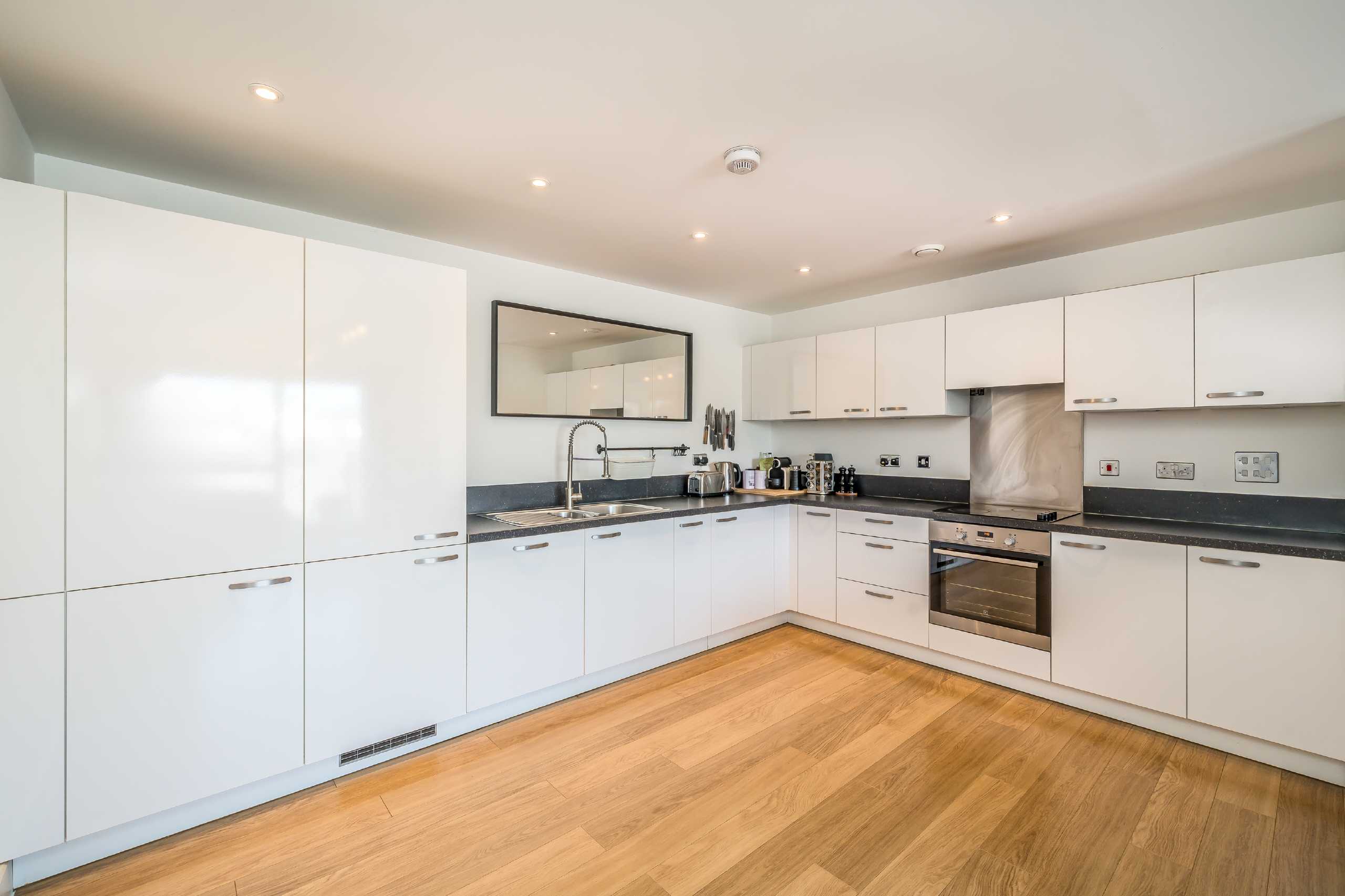 Within a secure and gated development, this property offers a daytime concierge, secure bike storage and a beautiful, spacious communal garden. The apartment is on the third floor of the building and has two bedrooms and a modern family kitchen and reception area.