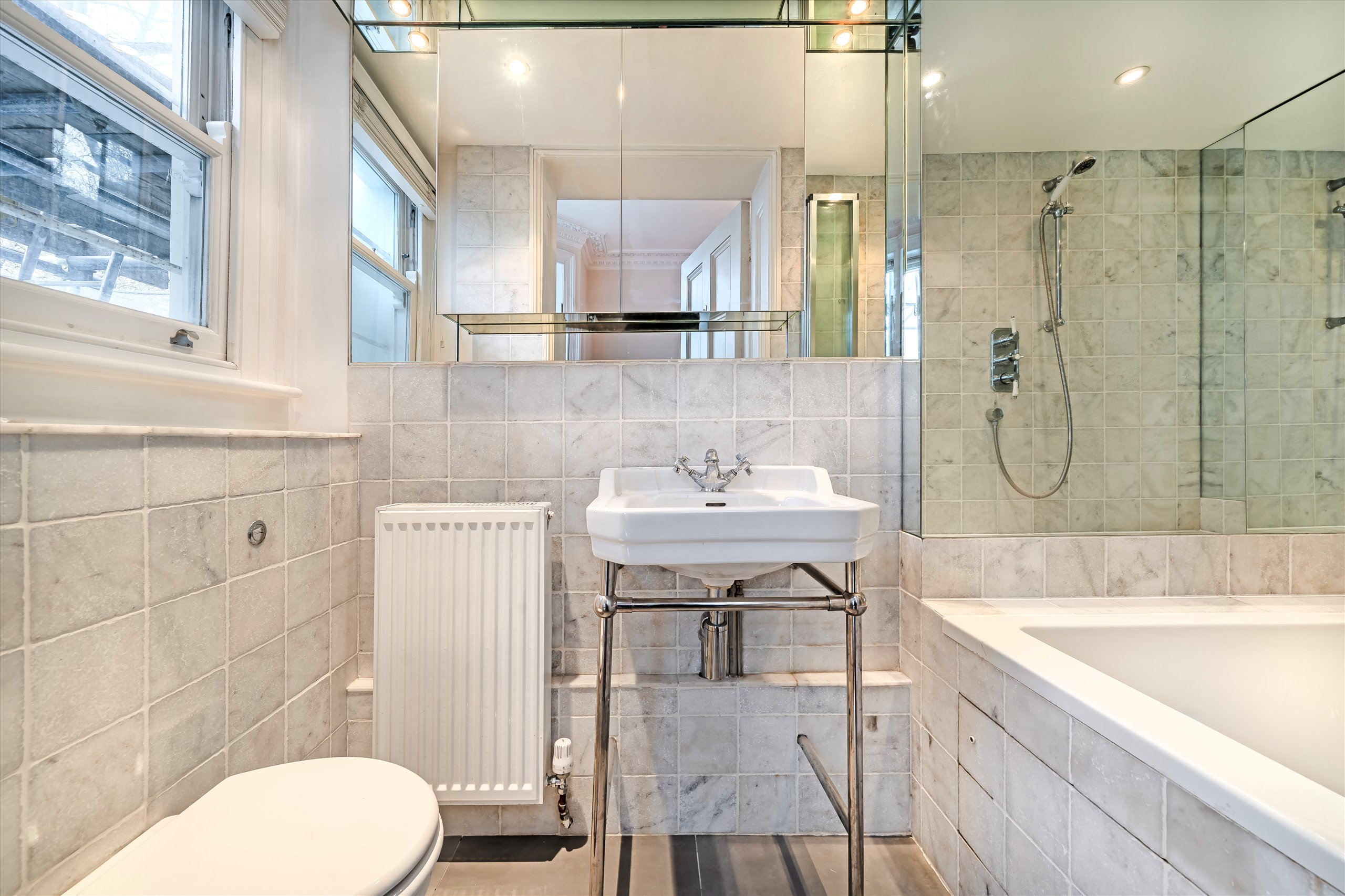 This exceptional property offers well-proportioned living space with high ceilings, large windows, wooden floors and a shared garden.
