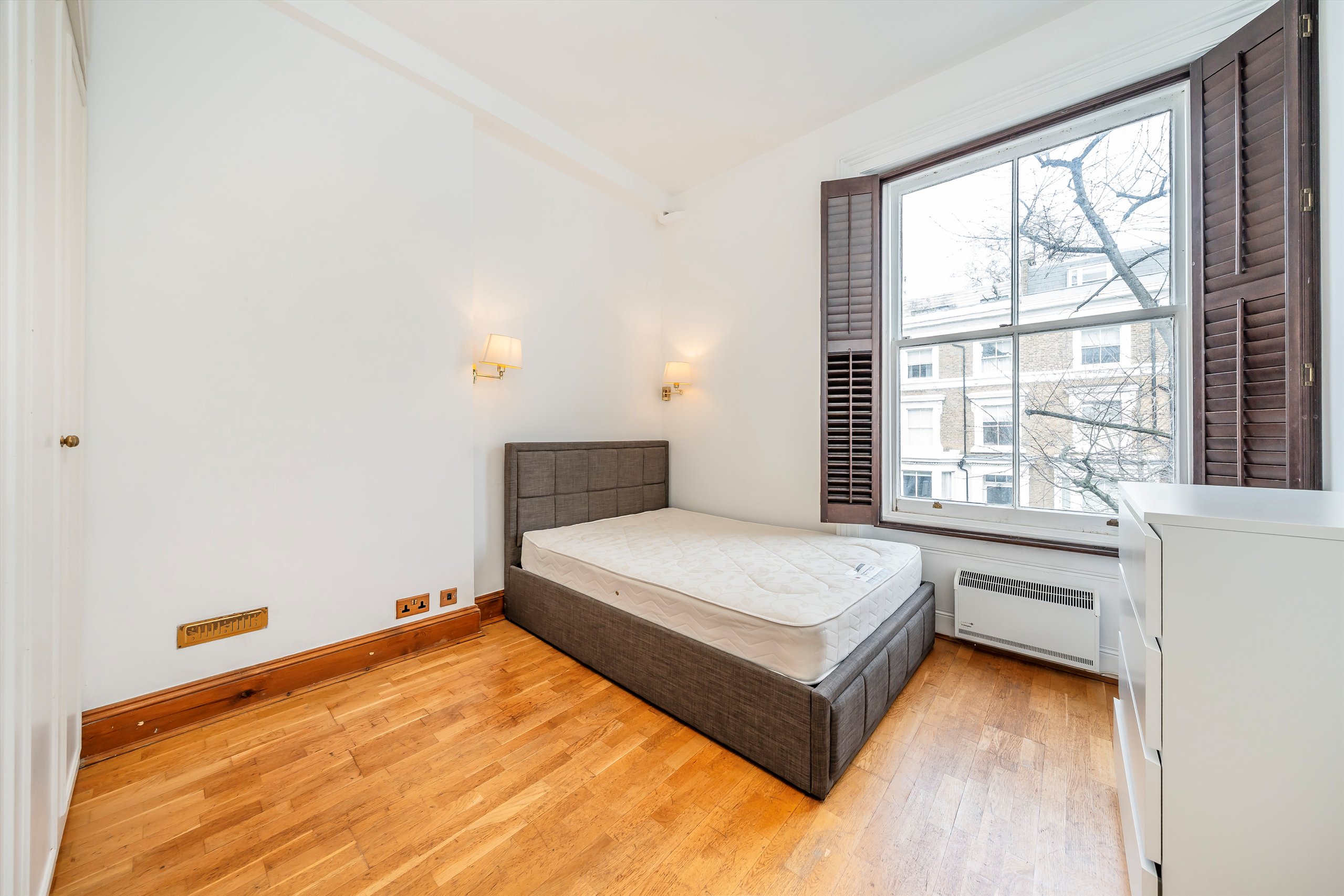 An attractive first floor, one bedroom apartment with high ceilings in a lovely Holland Park location. It benefits from wood flooring, open-plan living and pretty views over a charming tree lined street. The flat is ready to move into and would make an ideal first-time purchase or pied-à-terre.