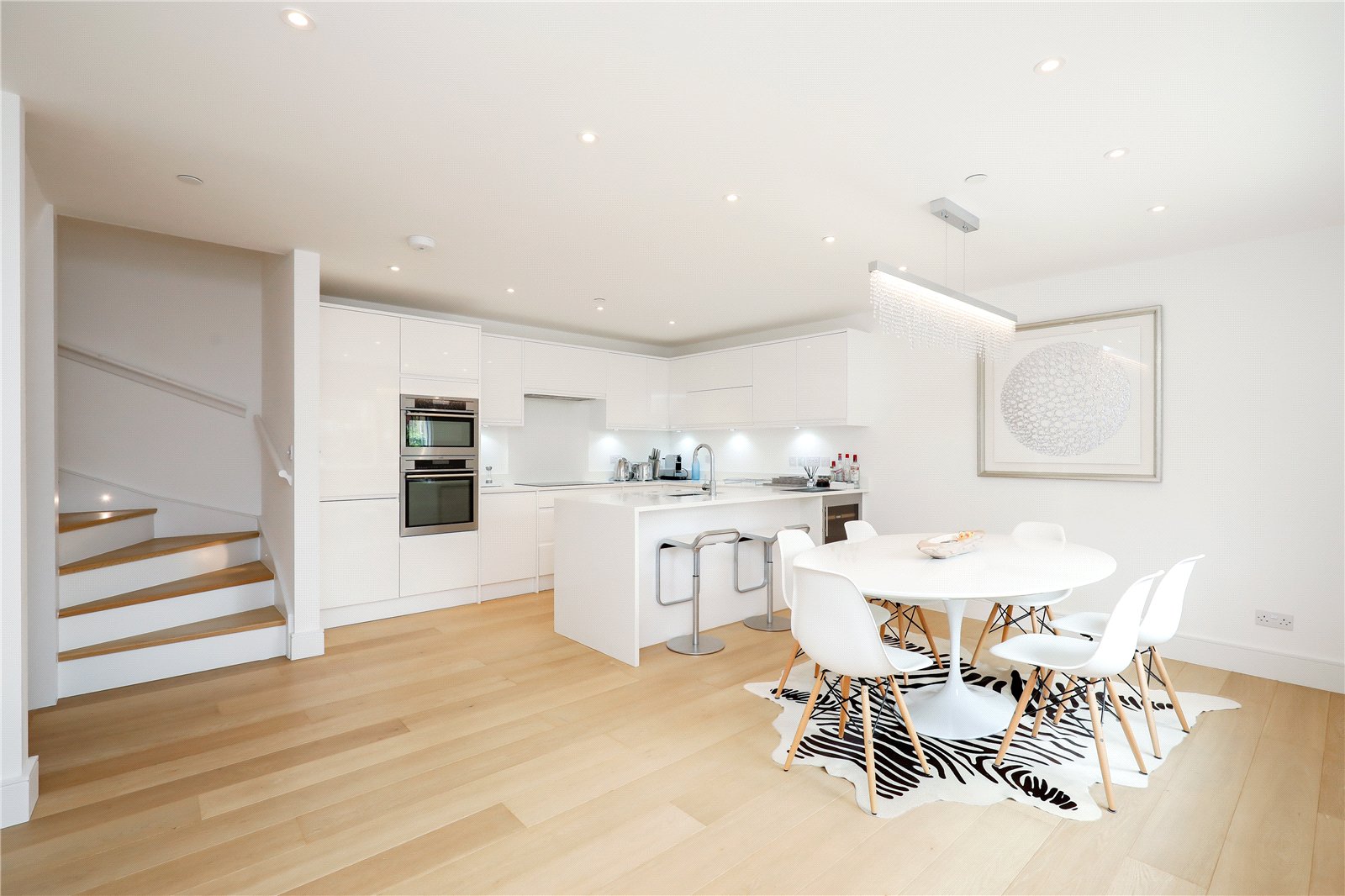 An immaculately presented three bedroom townhouse arranged over five floors. This modern property has excellent entertaining space with a relaxed lounge / tv room on the lower floor, a spacious kitchen / dining room on the ground floor, a bright reception room on the first floor, two double bedrooms and a bathroom on the second floor and a large master suite on the top floor with a private balcony. The whole house is in very good condition with wooden floors throughout, modern appliances and full of natural light.